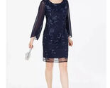 CONNECTED APPAREL Navy Sequined Floral Long Sleeve Scoop Neck Dress Size 16