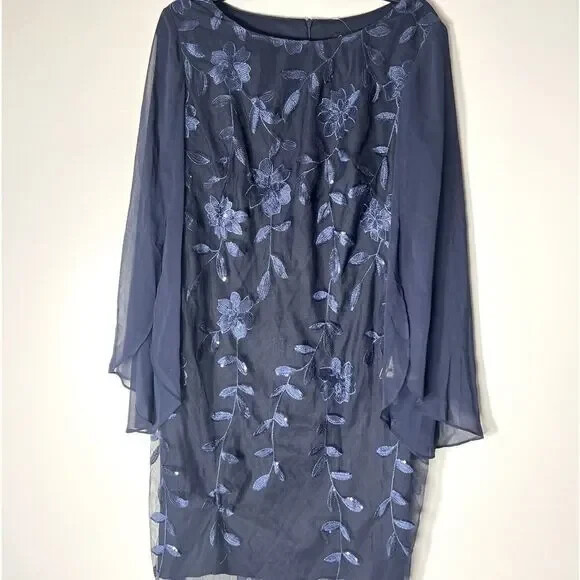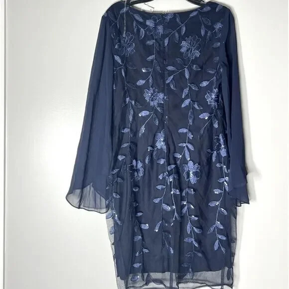 - CONNECTED APPAREL Navy Sequined Floral Long Sleeve Scoop Neck Dress Size 16