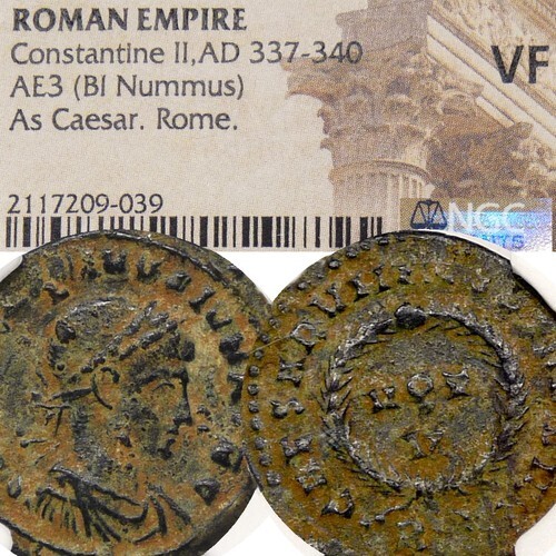 - Constantine II "the Great's" Son RARE in RIC NGC VF Rome mint Wreath Follis Coin