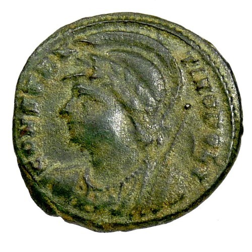 This coin is a lifetime issue of Constantine struck 333-335 AD.