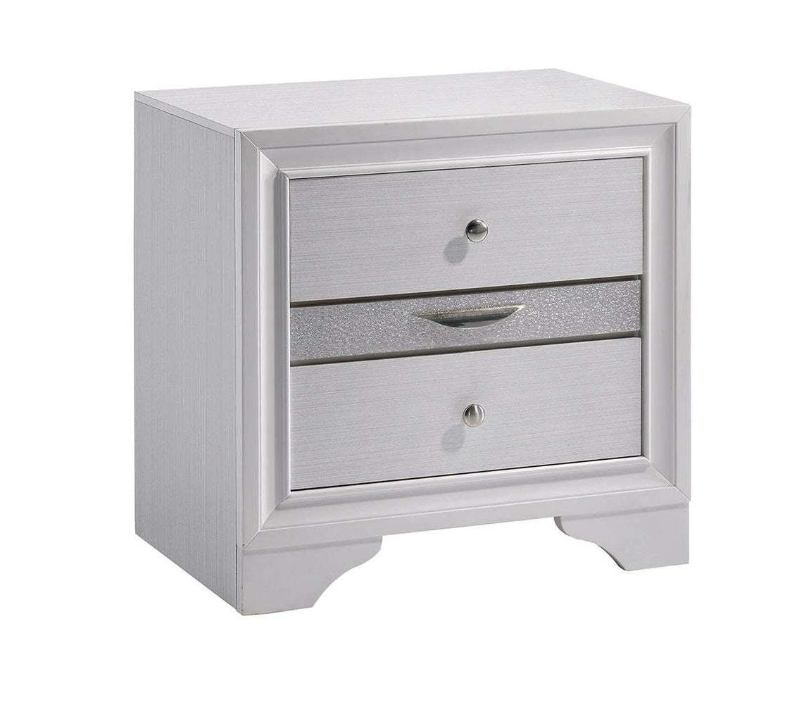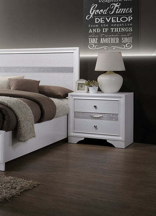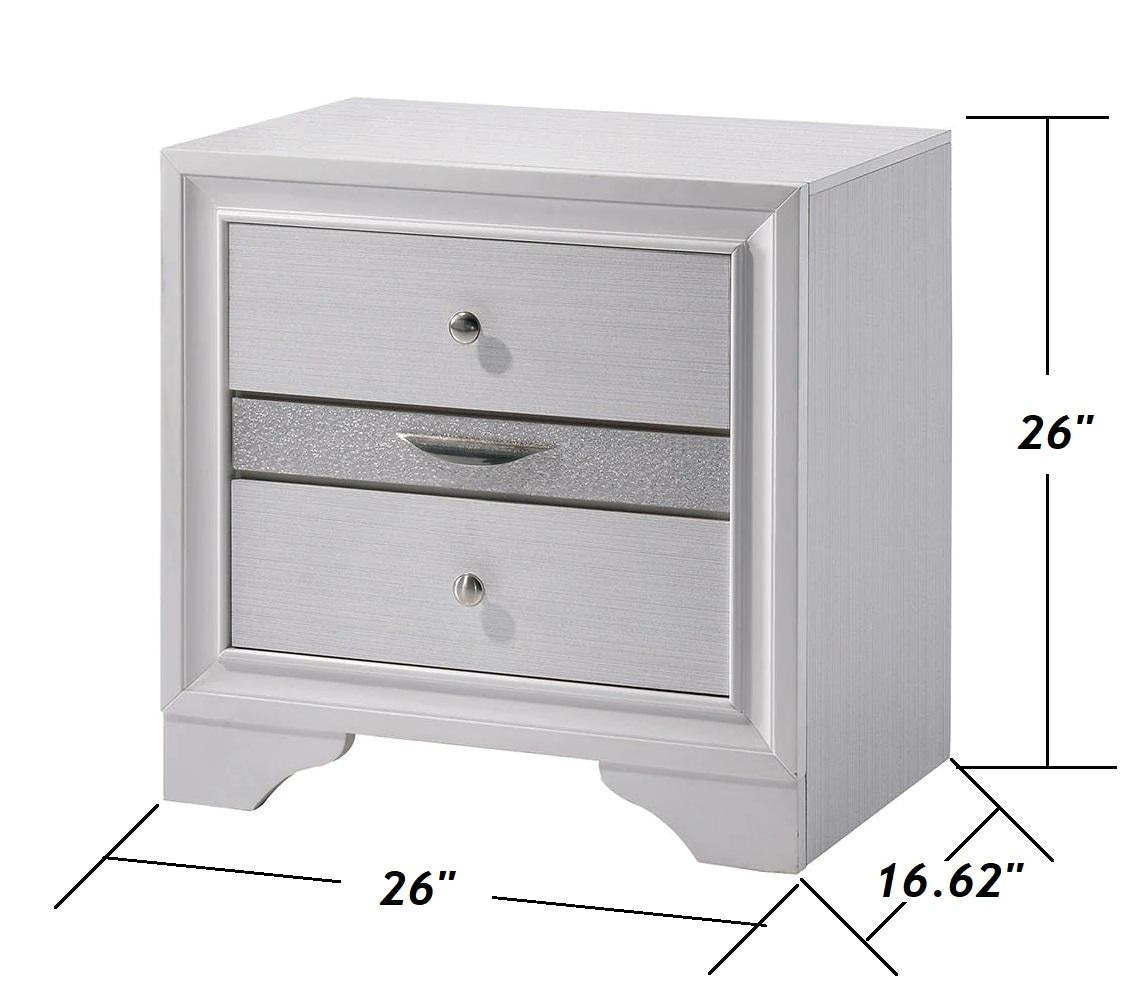 Brighten your room with the sheen and shine that this night stand delivers. The gleaming white finishes promote a refreshingly clean aesthetic with silver lines that glisten in any light. Silver tone pulls detail the night stand brilliantly.