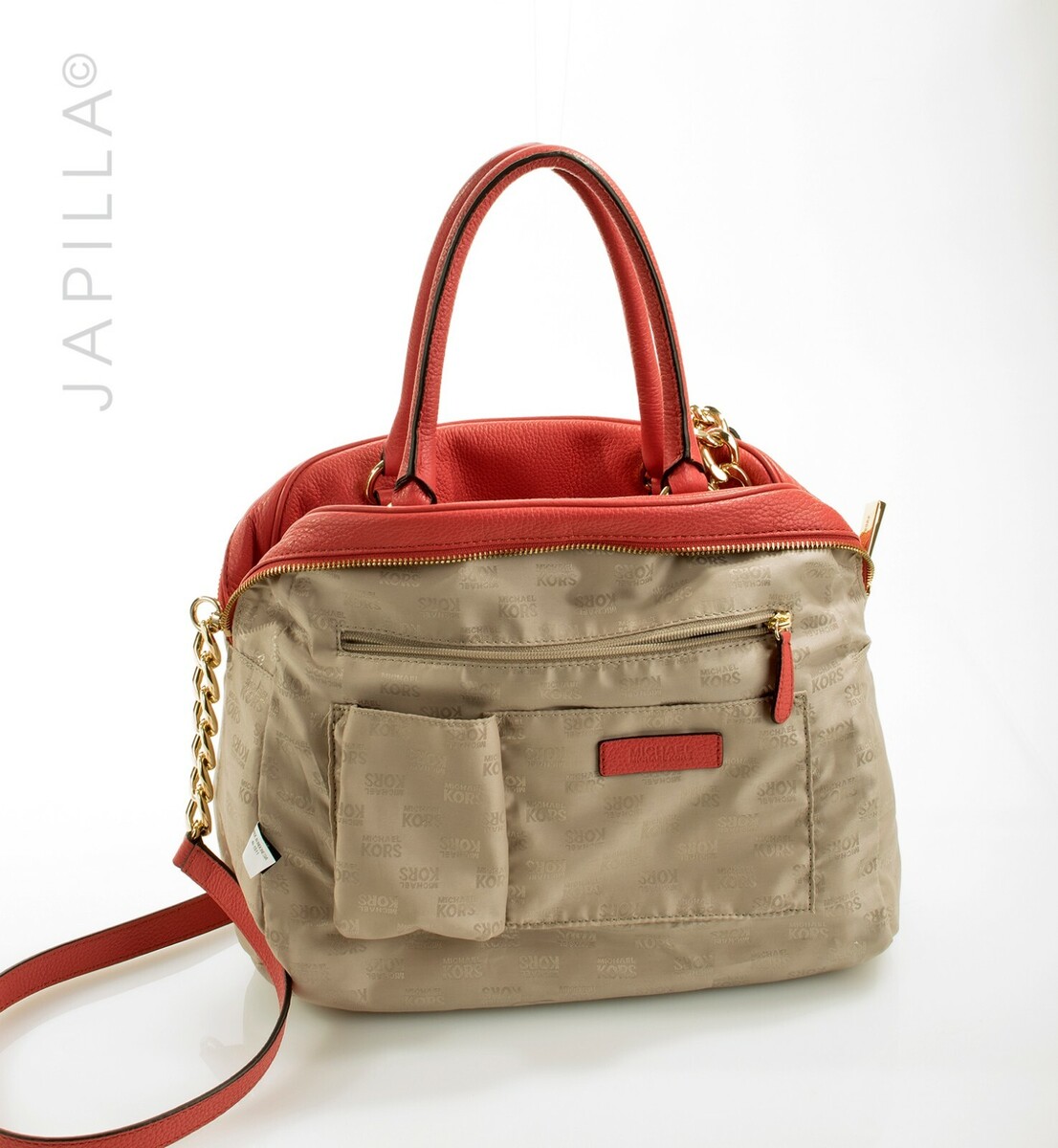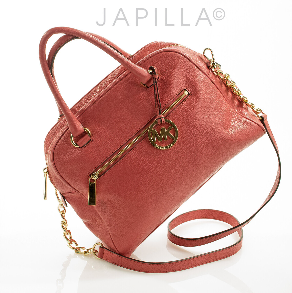 MICHAEL KORS CORAL LEATHER LEATHER CHAIN LINK SATCHEL