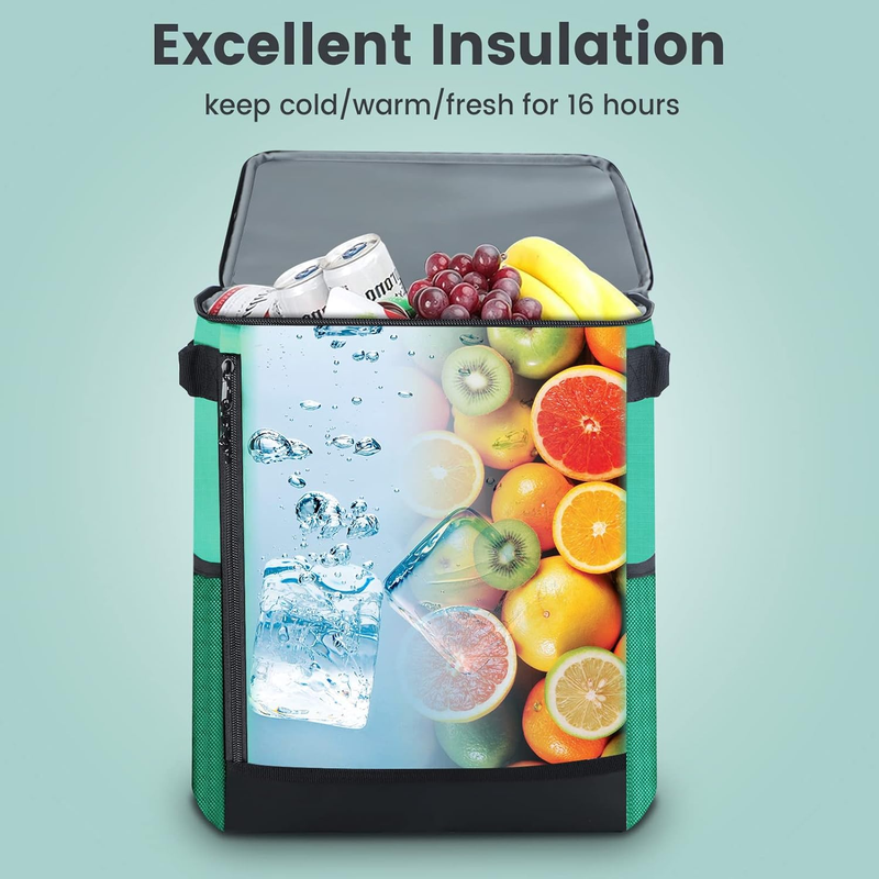 EXCELLENT INSULATION: Designed with thickened PEVA material and a thick layer of waterproof insulated foam to keep it cold, hot and fresh for up to 16 hours. You can drink cold beer and eat fresh snacks or fruits anywhere anytime with your friends or family