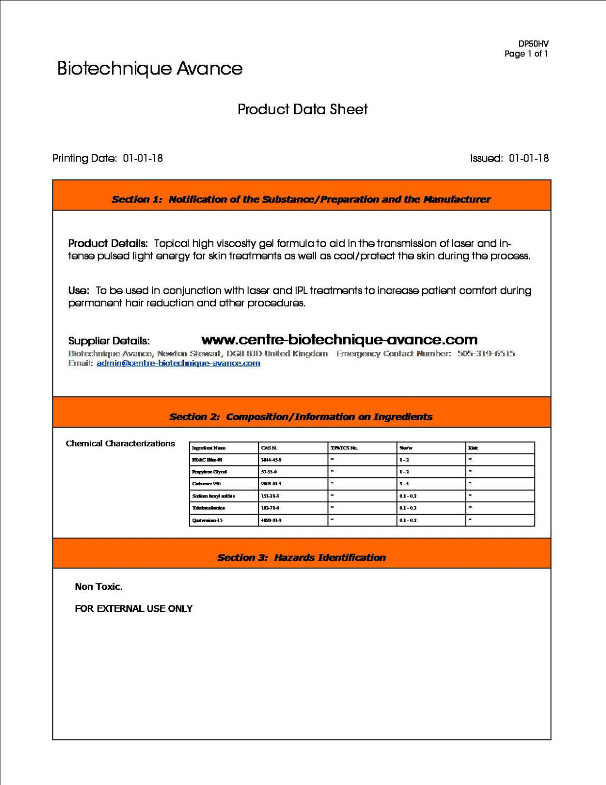 To be used in conjunction with laser and IPL treatments to increase translucency (photon penetration) of the skin and patient comfort during IPL and Laser procedures.