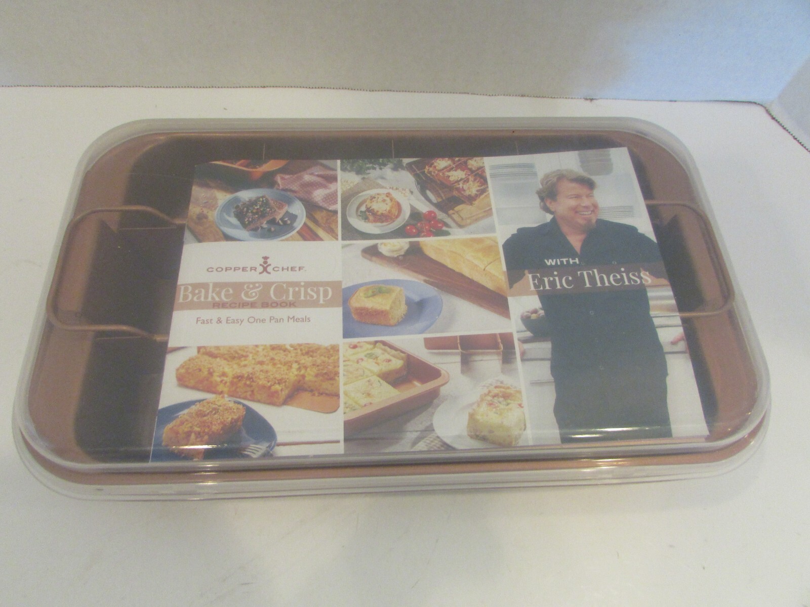 - Copper Chef Bake & Crisp Pan 4 pc Set Eric Theiss Recipes New 13 x 7.5" w/Lid