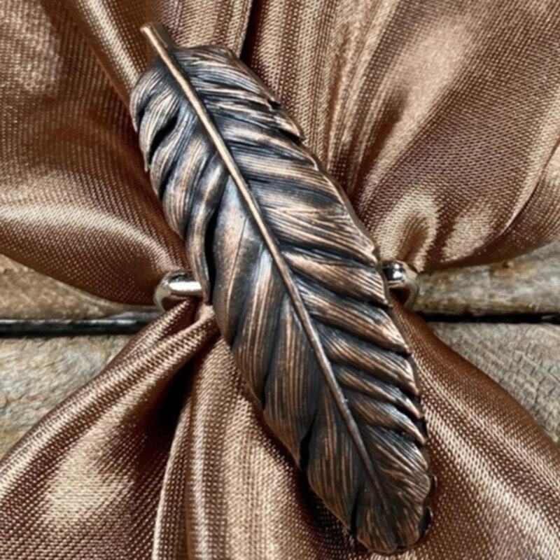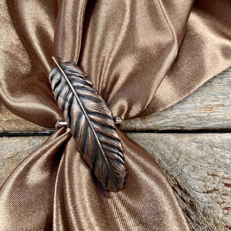 - Copper Etched Leaf Western Scarf Slide or Tee Clip