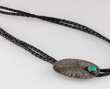 Plata de Ley Turquesa Bolo Corbata Con Trenzado Cuero Uno Missing Herrete