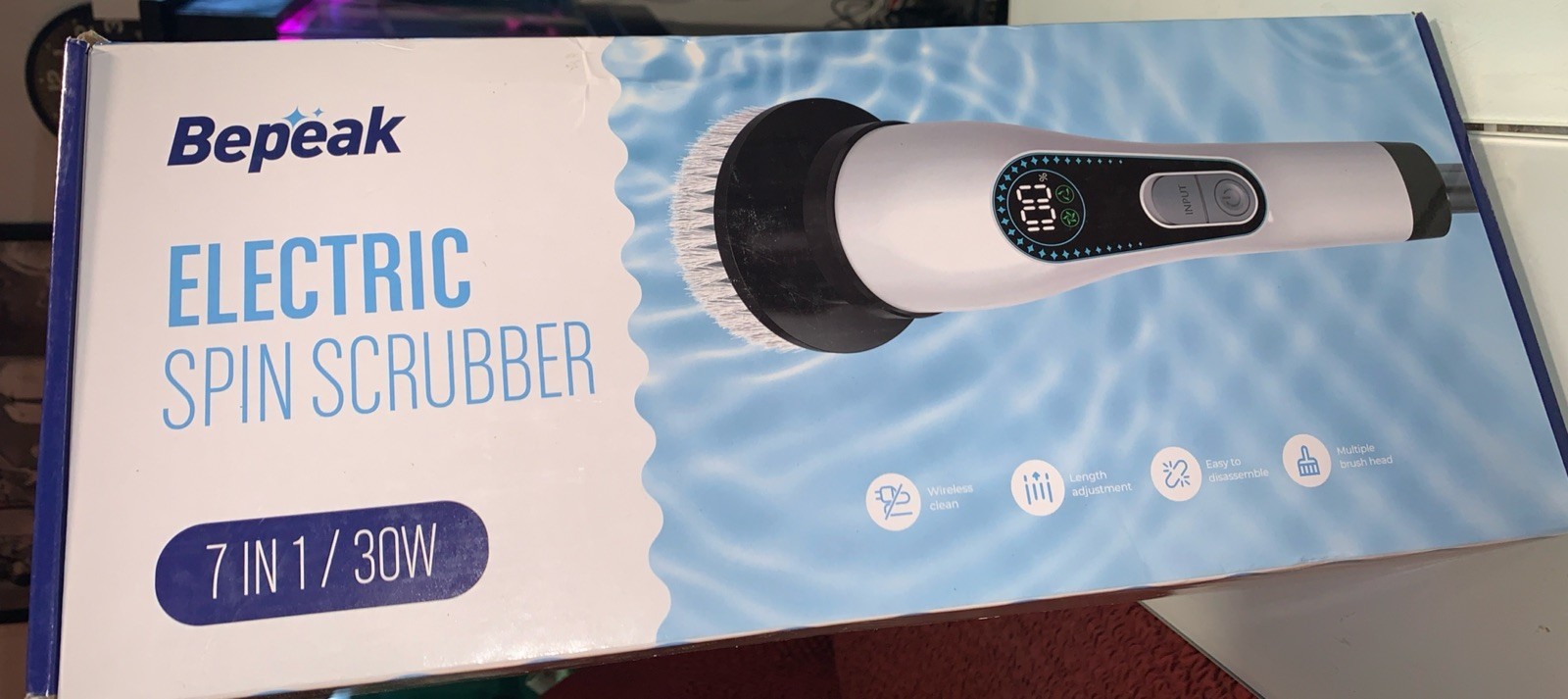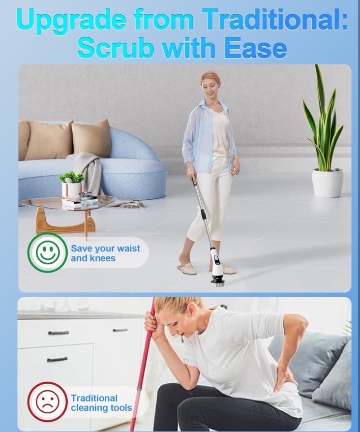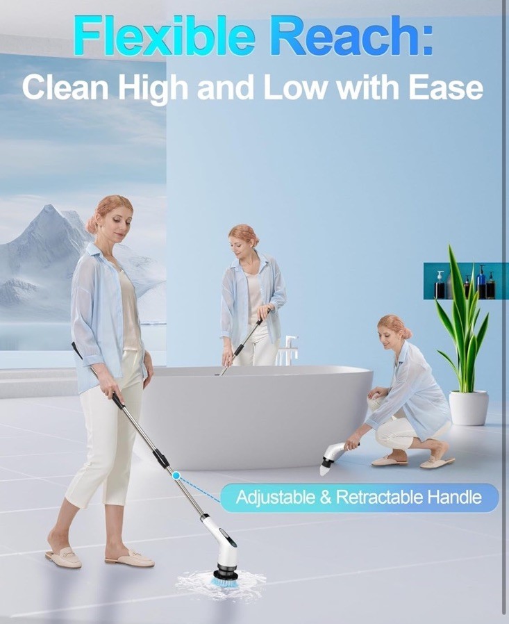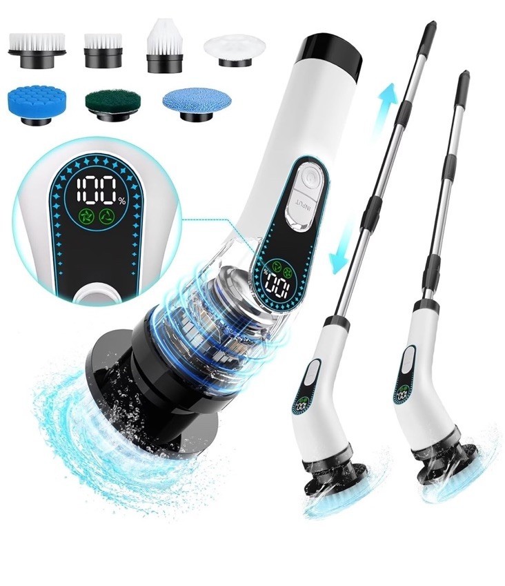 - Cordless Electric Spin Scrubber with 7 Replaceable Attachments , Tub Tile Floor