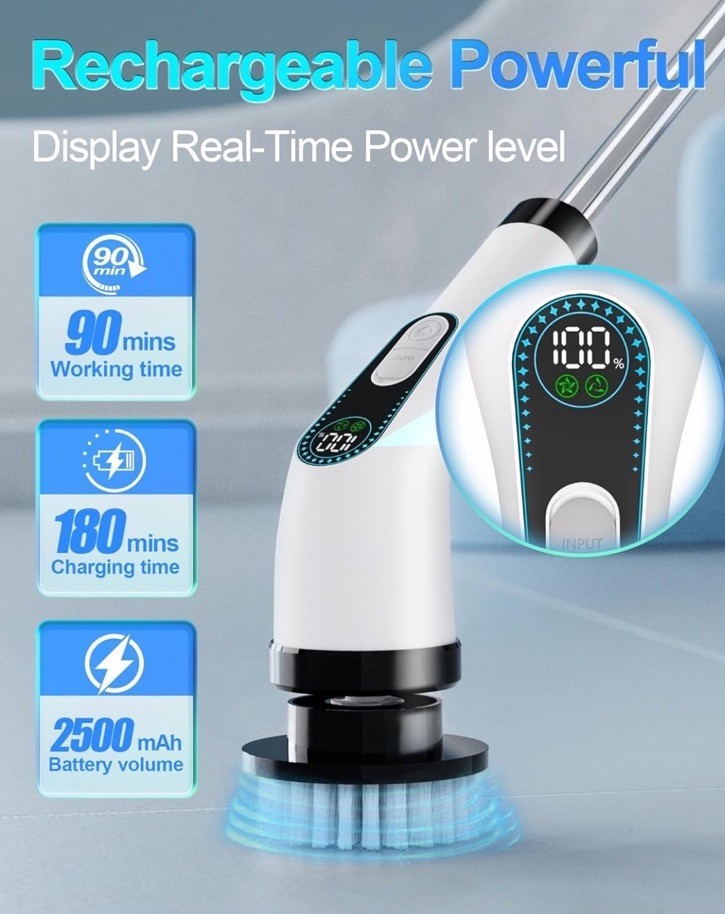 Cordless Electric Spin Scrubber with 7 Replaceable Attachments , Tub Tile Floor