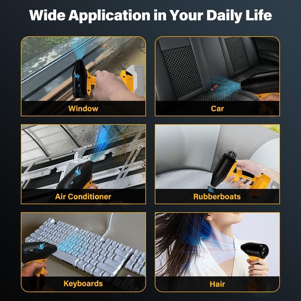 ?Easy to Operate and Safe to Use?: Input: 18V/20V | Max. Current: 9.5A | Max. Power: 200W, The blower is 1 button controls the on/off switch, 4 speeds: 8M/S, 18M/S, 25M/S, 30M/S. Jet Fan up to 130,000RPM/Min. Built-in low voltage protection to protect your battery, please feel free to use it. Warm tip: Remove it from the battery when you are not using it.
