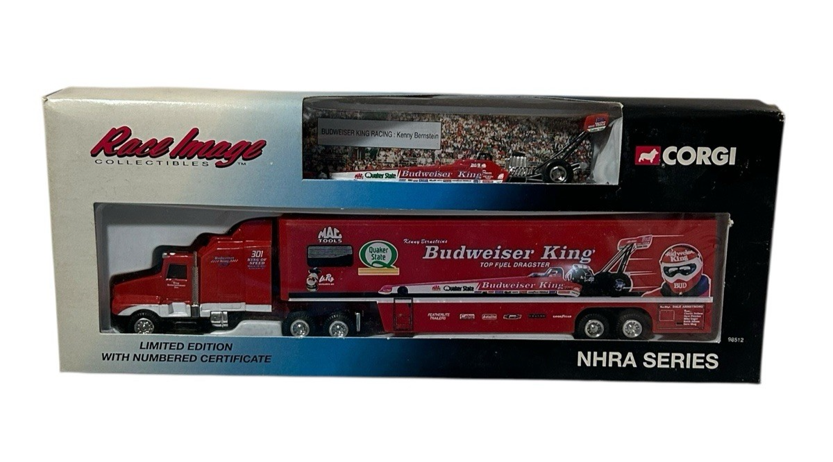 - CORGI RACE IMAGE NHRA SERIES BUDWEISER TRANSPORTER + DRAGSTER KENNY BERNSTEIN