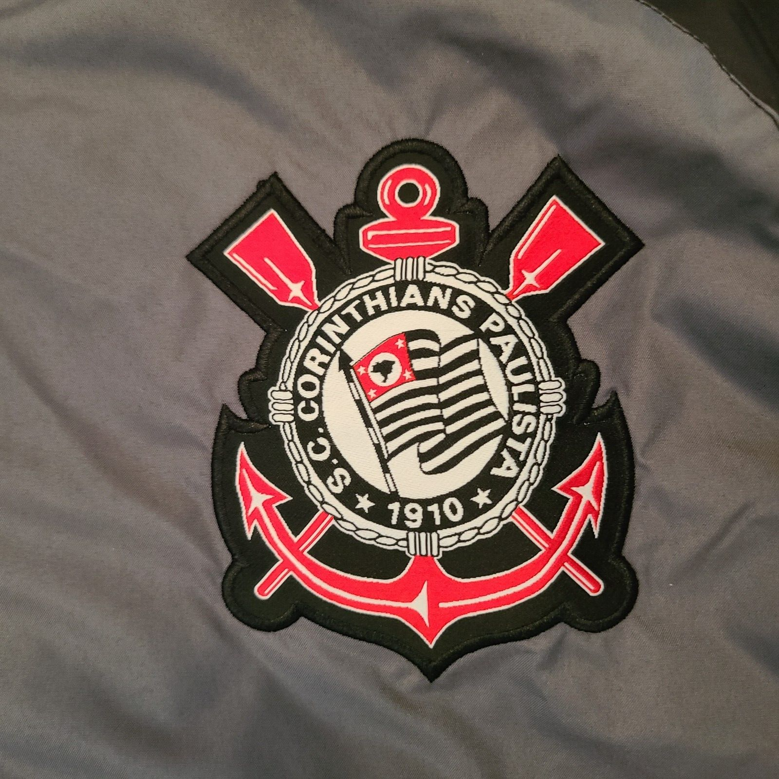 CORINTHIANS PAULISTA Bomber Jacket Adult Size S-M Zip Grey Black Soccer Futbol