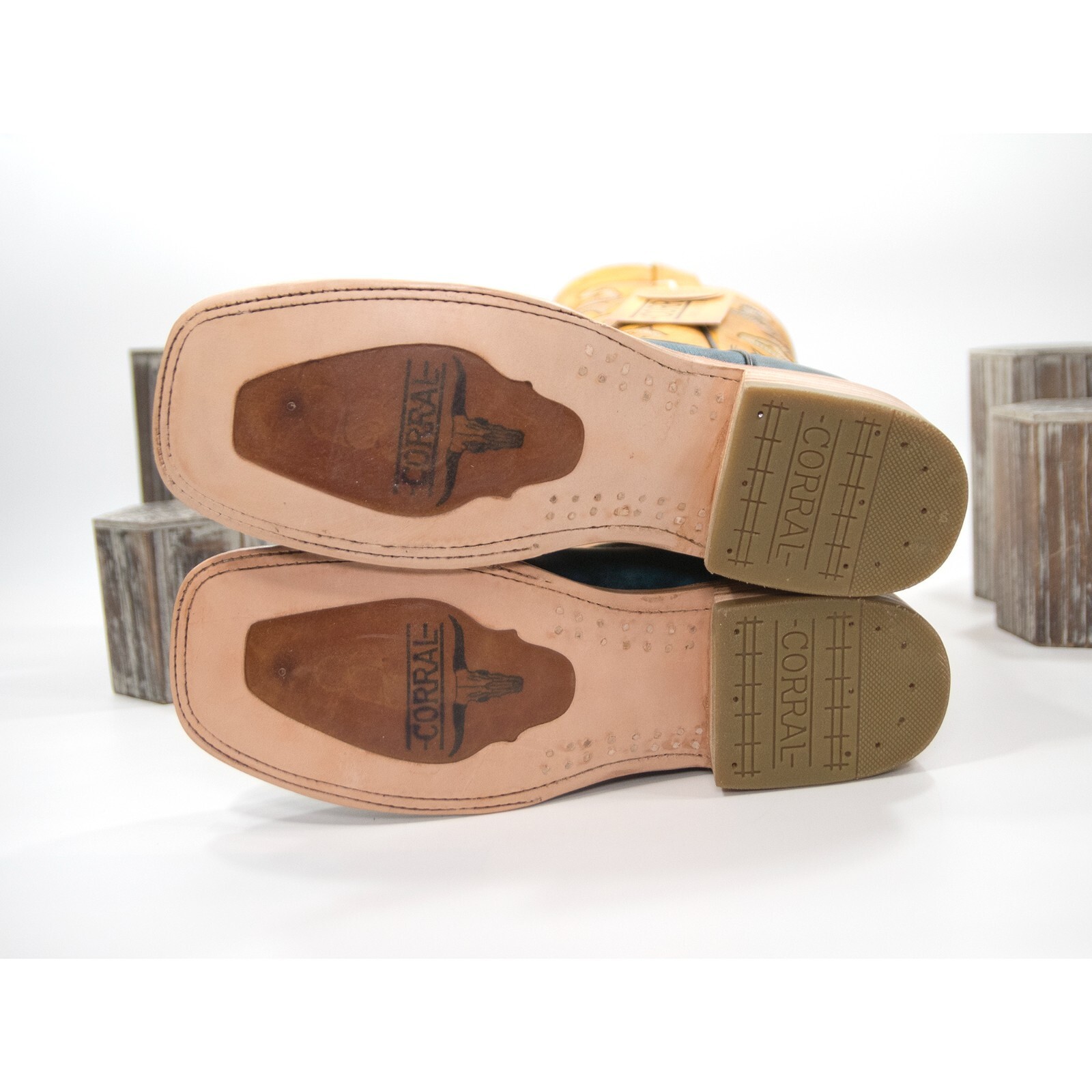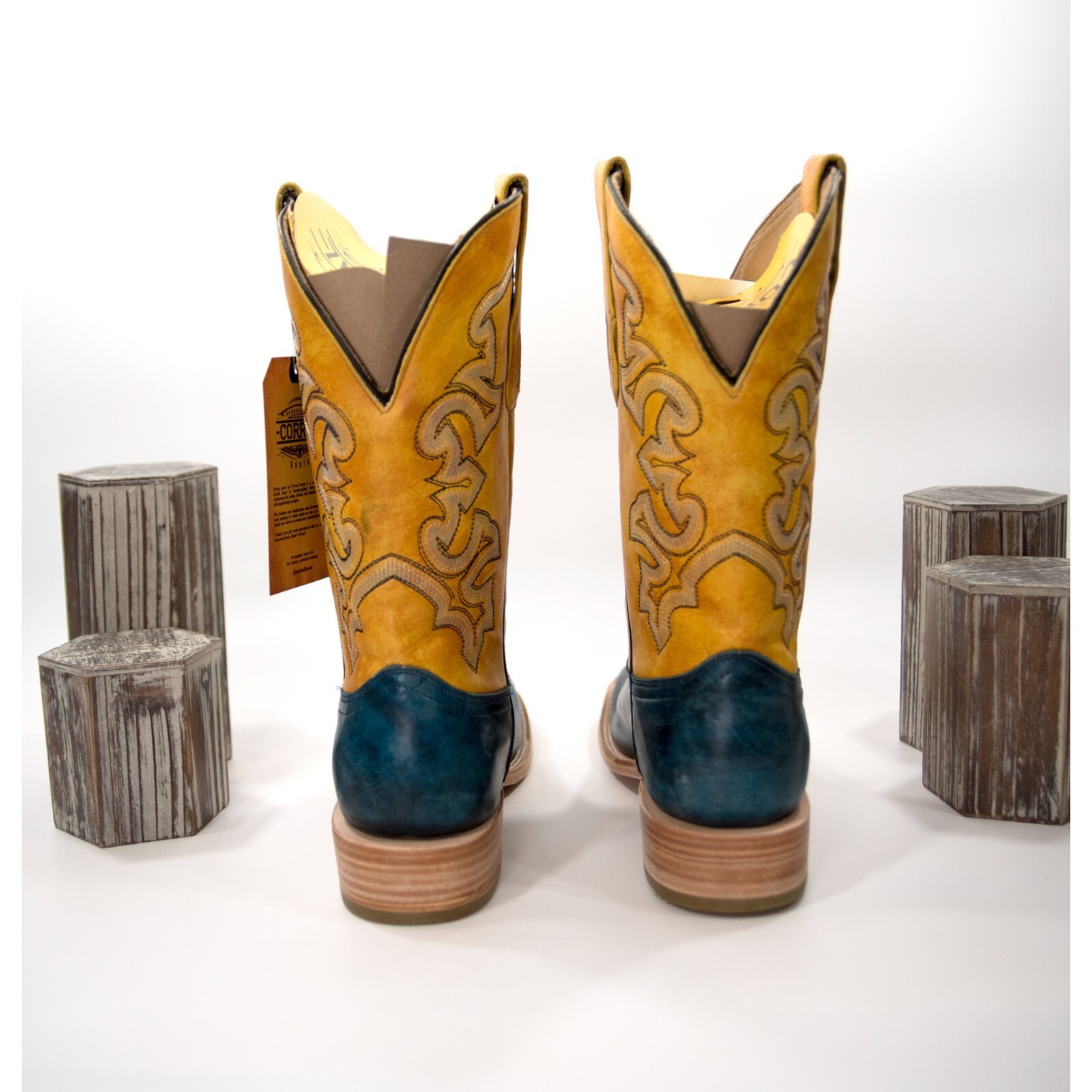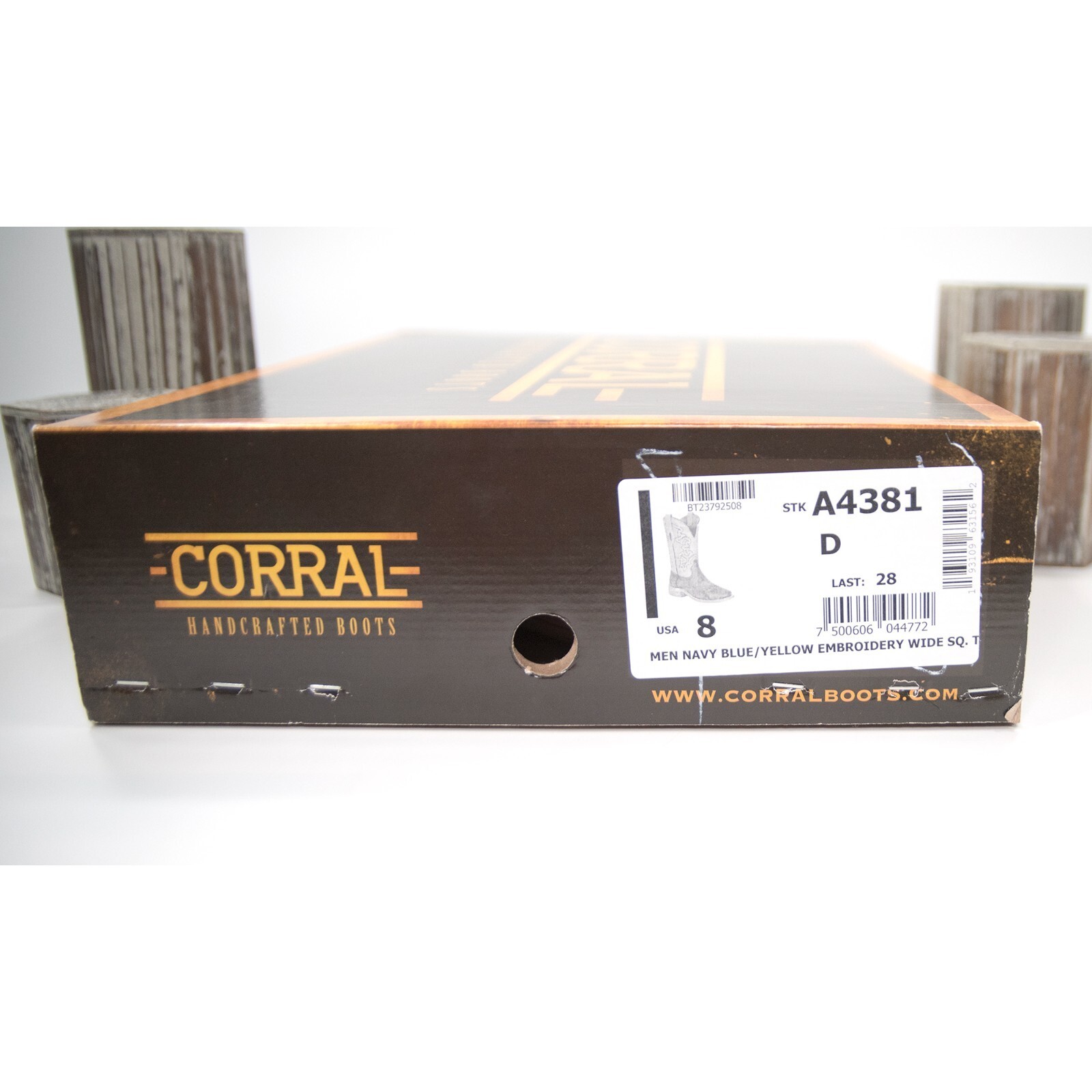 - Corral A4381 Navy Blue Yellow Leather Embroidered Square Toe Boots Mens 8 NIB