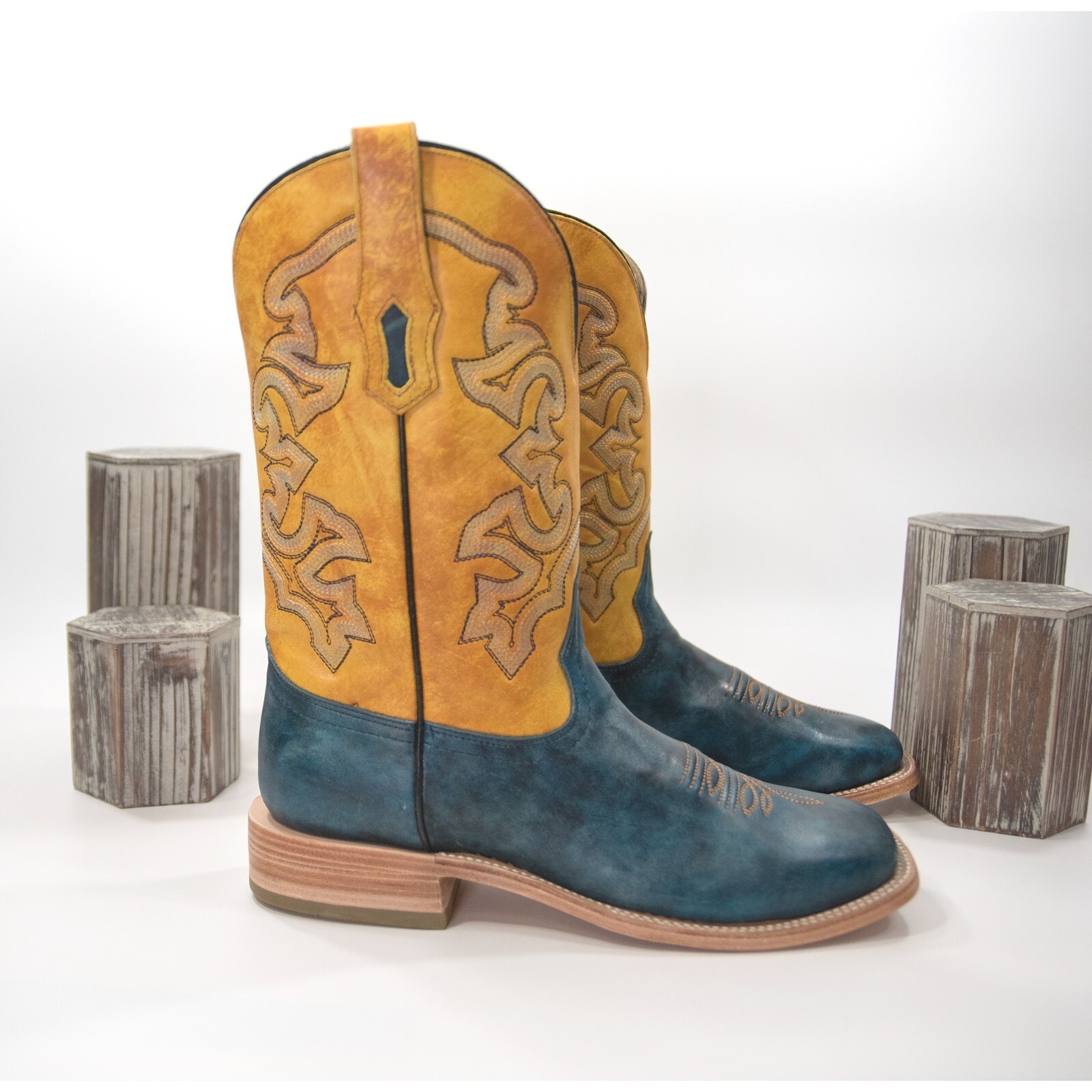 Corral A4381 Navy Blue Yellow Leather Embroidered Square Toe Boots Mens 8 NIB