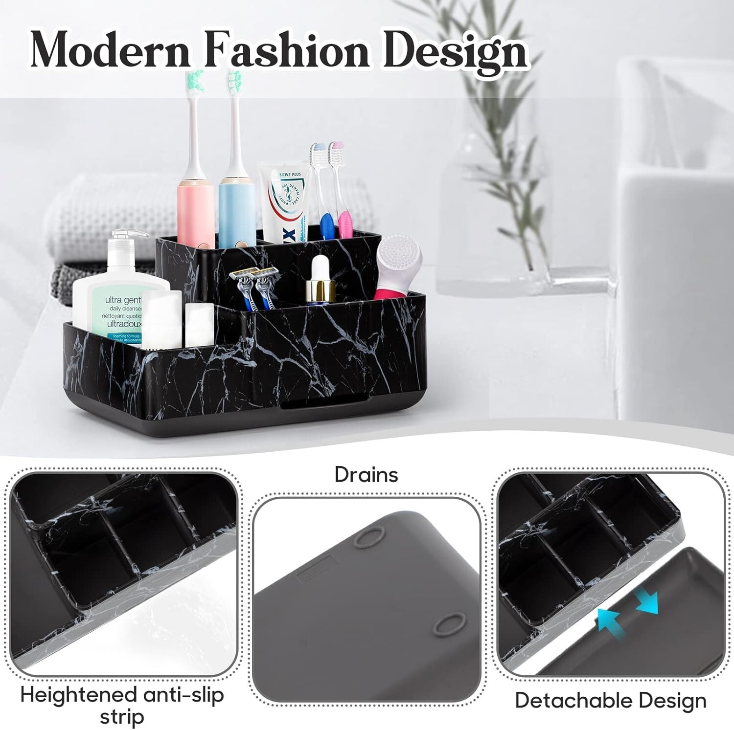 - Corrosion-Resistant Black Bathroom Organizer with Easy Clean Detachable Design
