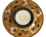 Handcrafted Corsica Home **Brigette** dinner plate featuring a folk-art floral pattern, warm golden tones, and a decorative crackle-glaze finish. This plate has beautiful hand-painted detailing and a rustic cottage look. Displays well as decor or for everyday use.
