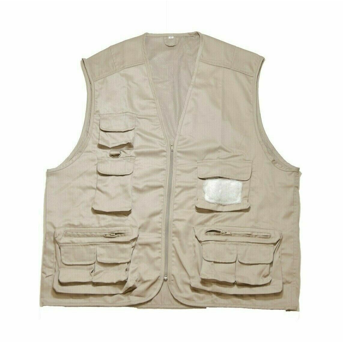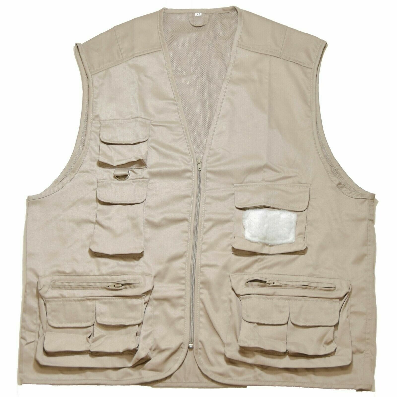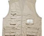 The Cortland Fly Fishing Vest in beige, medium/large size, is designed with multiple compartments and a D-ring rod holder, ensuring your gear is easily accessible.