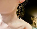 Adorn yourself in contemporary charm with the Cosmic Geo Link Statement Earrings featuring asymmetrical chain drops and two blue stones inside of geometric housings.