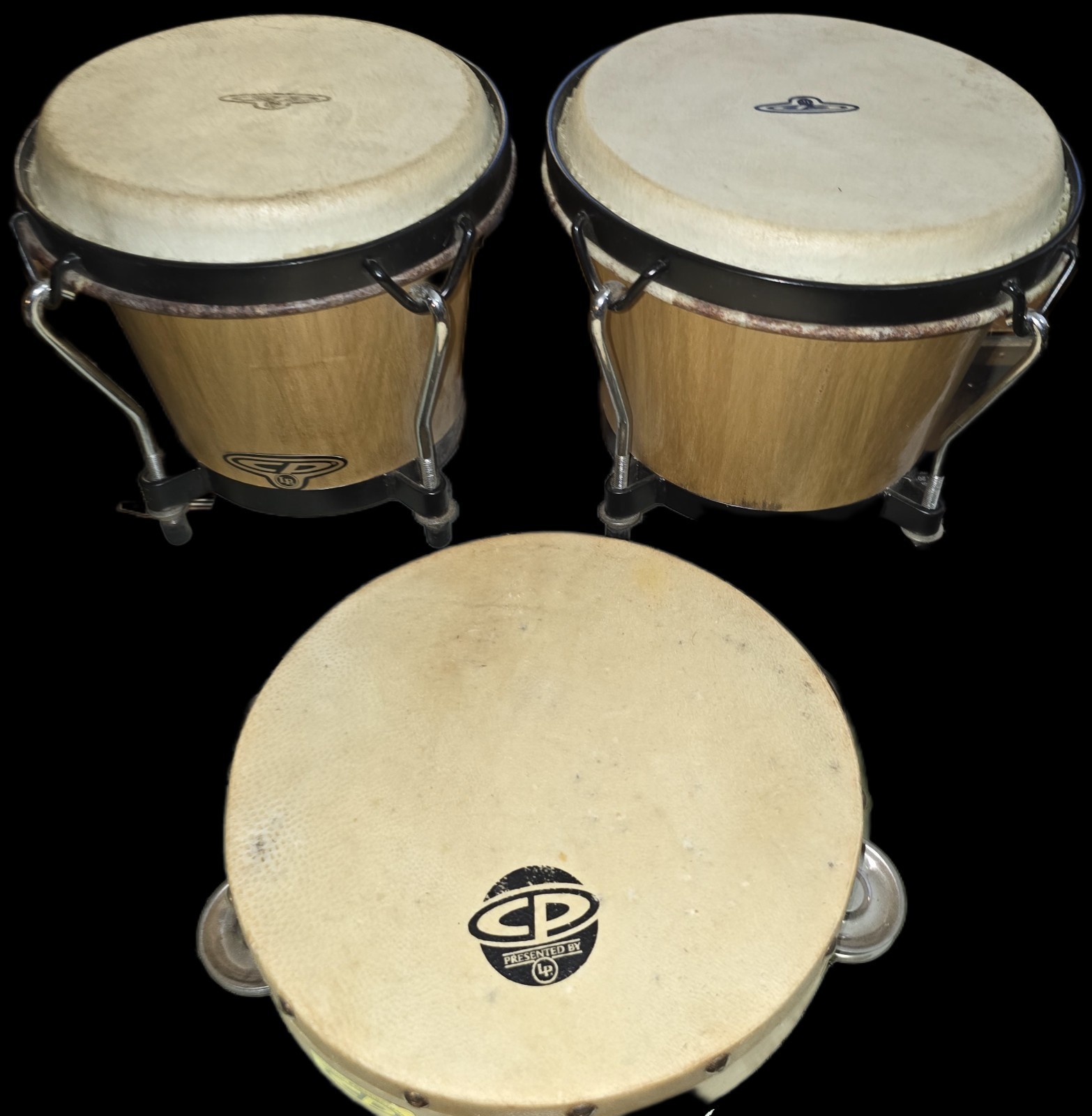 - Cosmic Percussion Bongo Drums CP By LP 8” & 7” Dark Wood Tunable W/ Tambourine