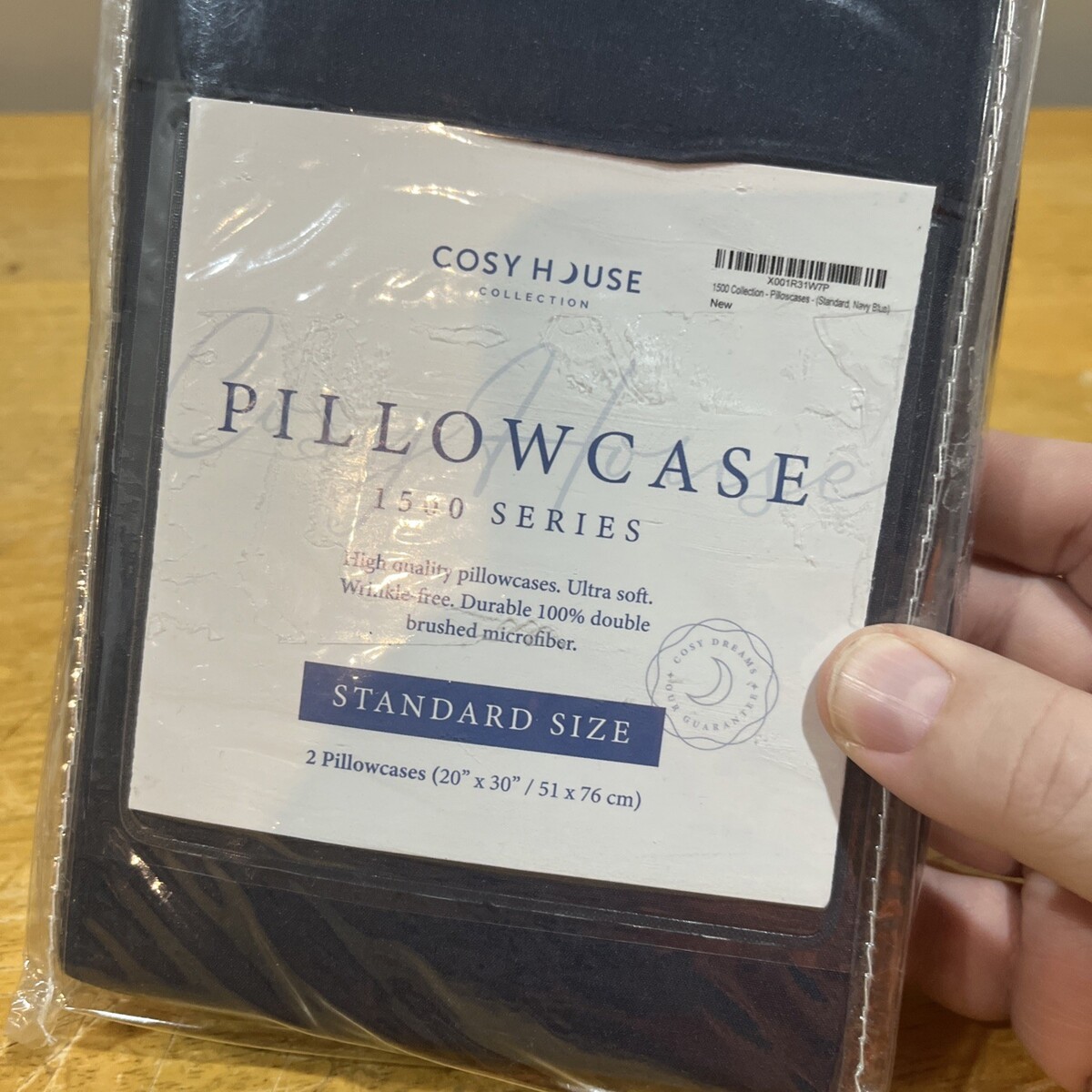 - Cosy House Collection Navy Blue 1500 Series Pillowcases Standard Size Set Of 2