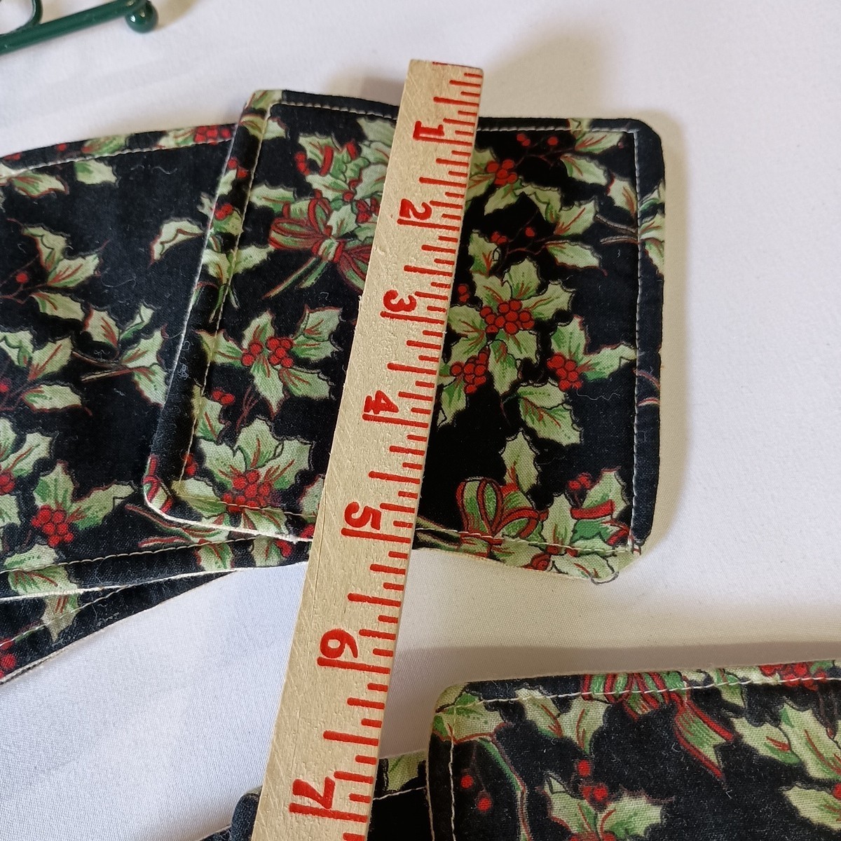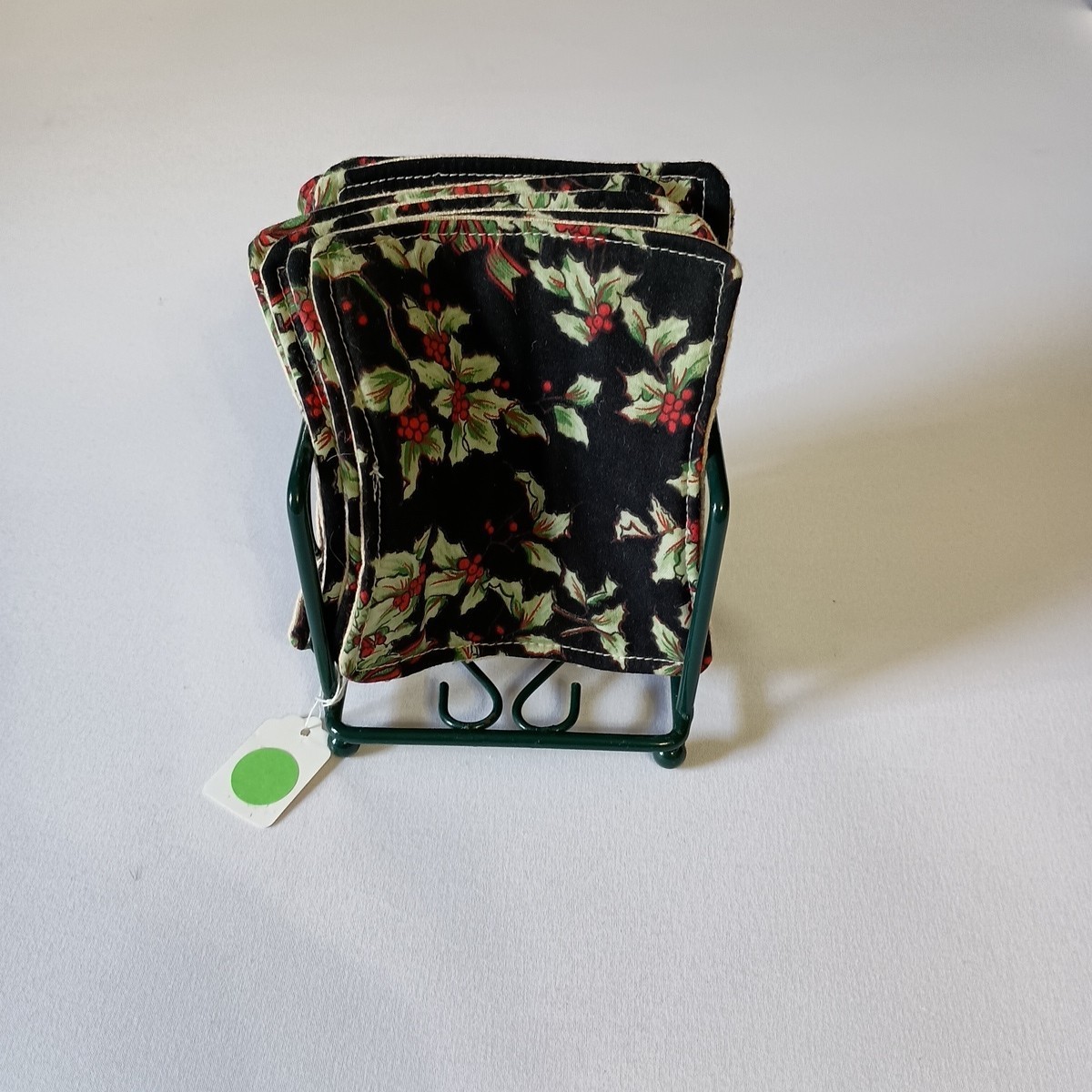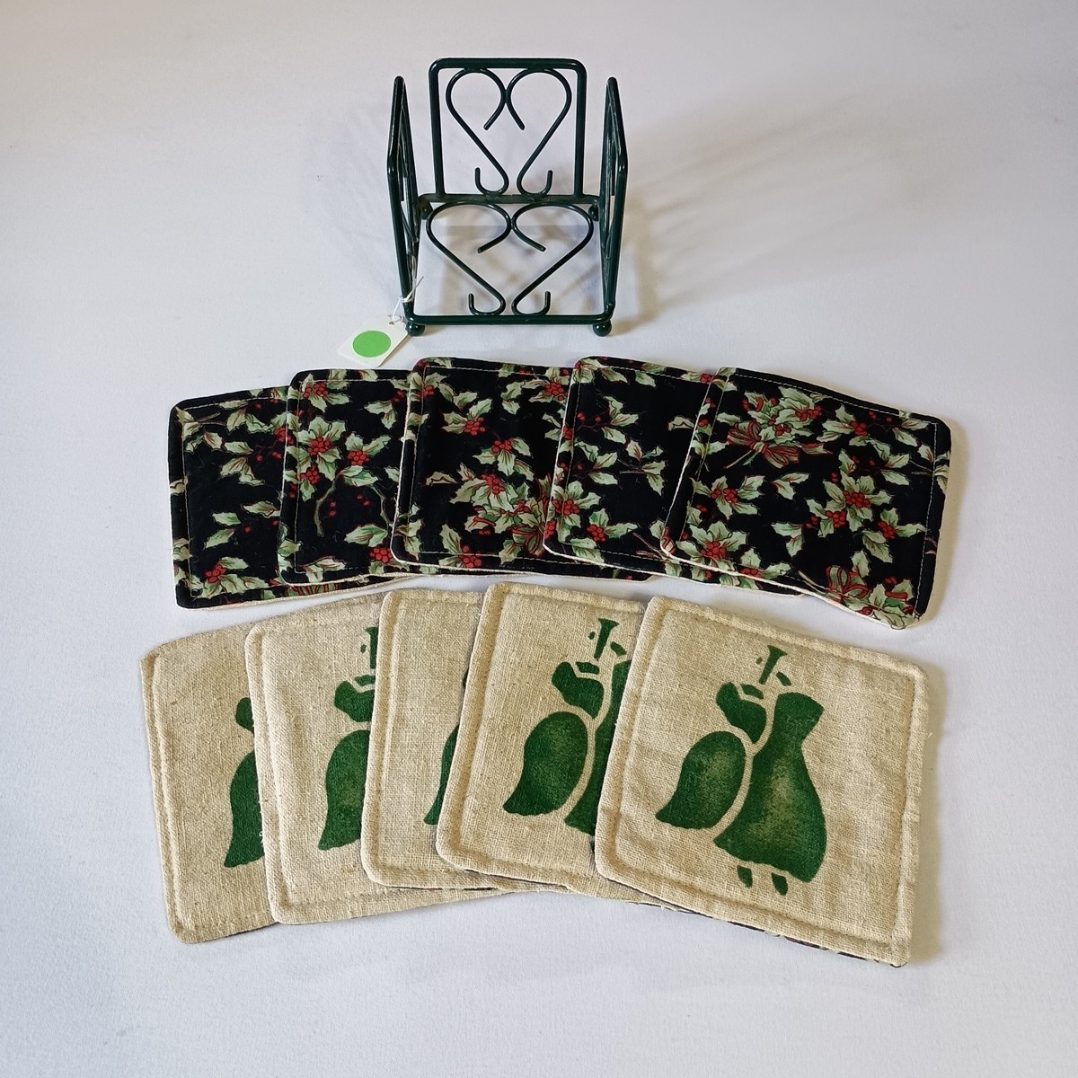 - Cottagecore Fabric Coasters Amish Made Set of 10 & Green Metal Holder Included