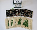 Cottagecore Fabric Coasters Amish Made Set of 10 & Green Metal Holder Included