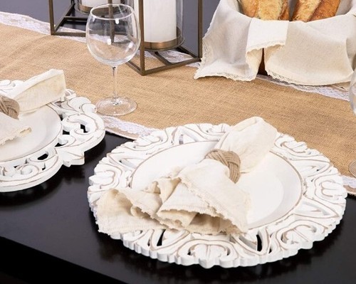 - Cotton Craft 20" Dinner Napkins ~ Cotton ~ Flax/Linen ~ Natural Color Lace Trim