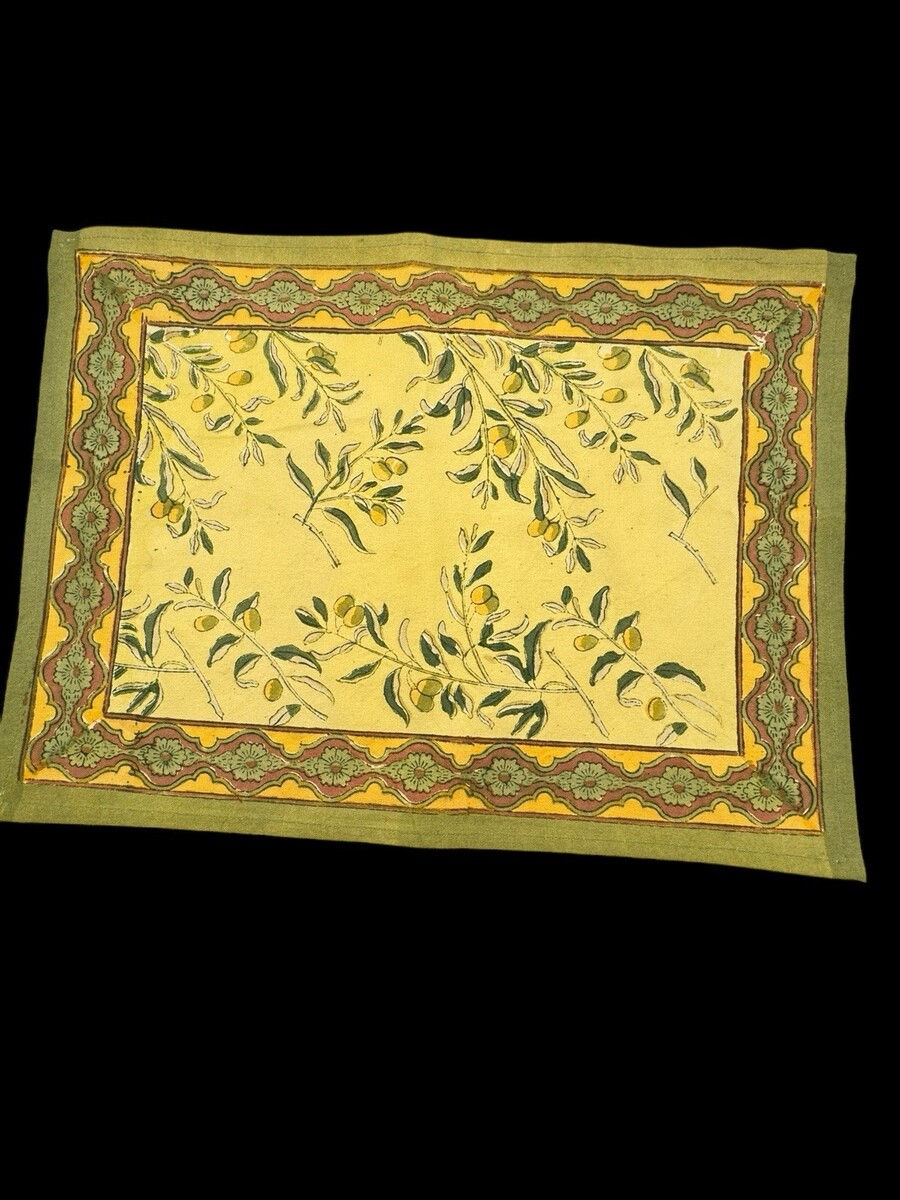 Couleur Nature Set of 5 Placemats & Napkins Lot Olive Tree Handmade India Yellow