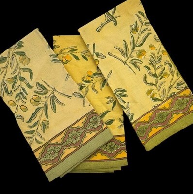 - Couleur Nature Set of 5 Placemats & Napkins Lot Olive Tree Handmade India Yellow