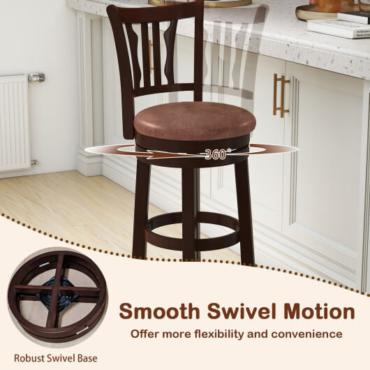 Counter Height Swivel Bar Stools Set of 2 with Back and Solid Rubber Frame-29 -
