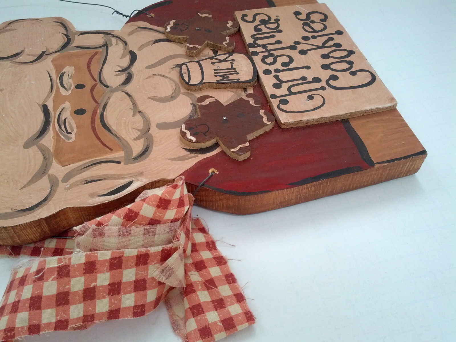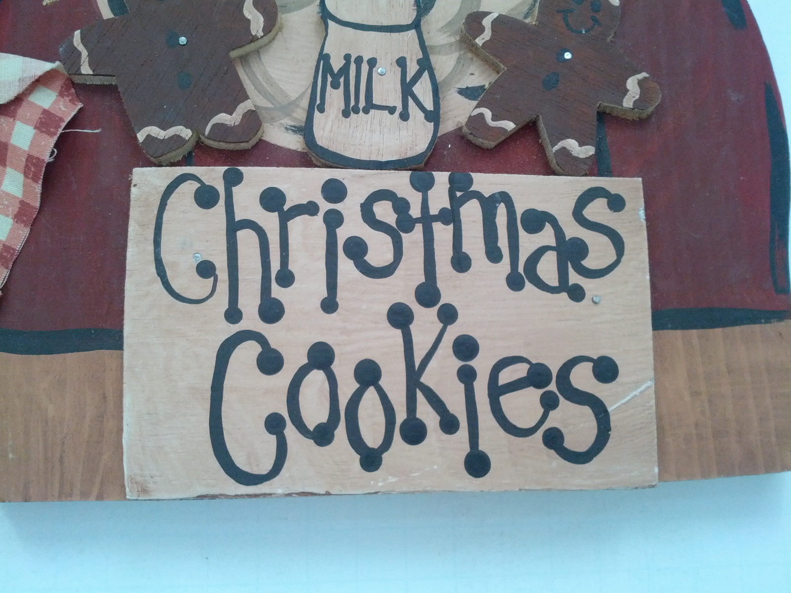 - Country shabby chic painted wooden santa with cookies plaque wall door hanging