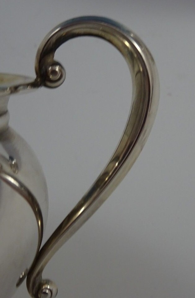 1 - Creamer (Gold Washed Interior): Measures 3 3/4" tall x 4 1/2" and weighs 2.7 troy ounces.