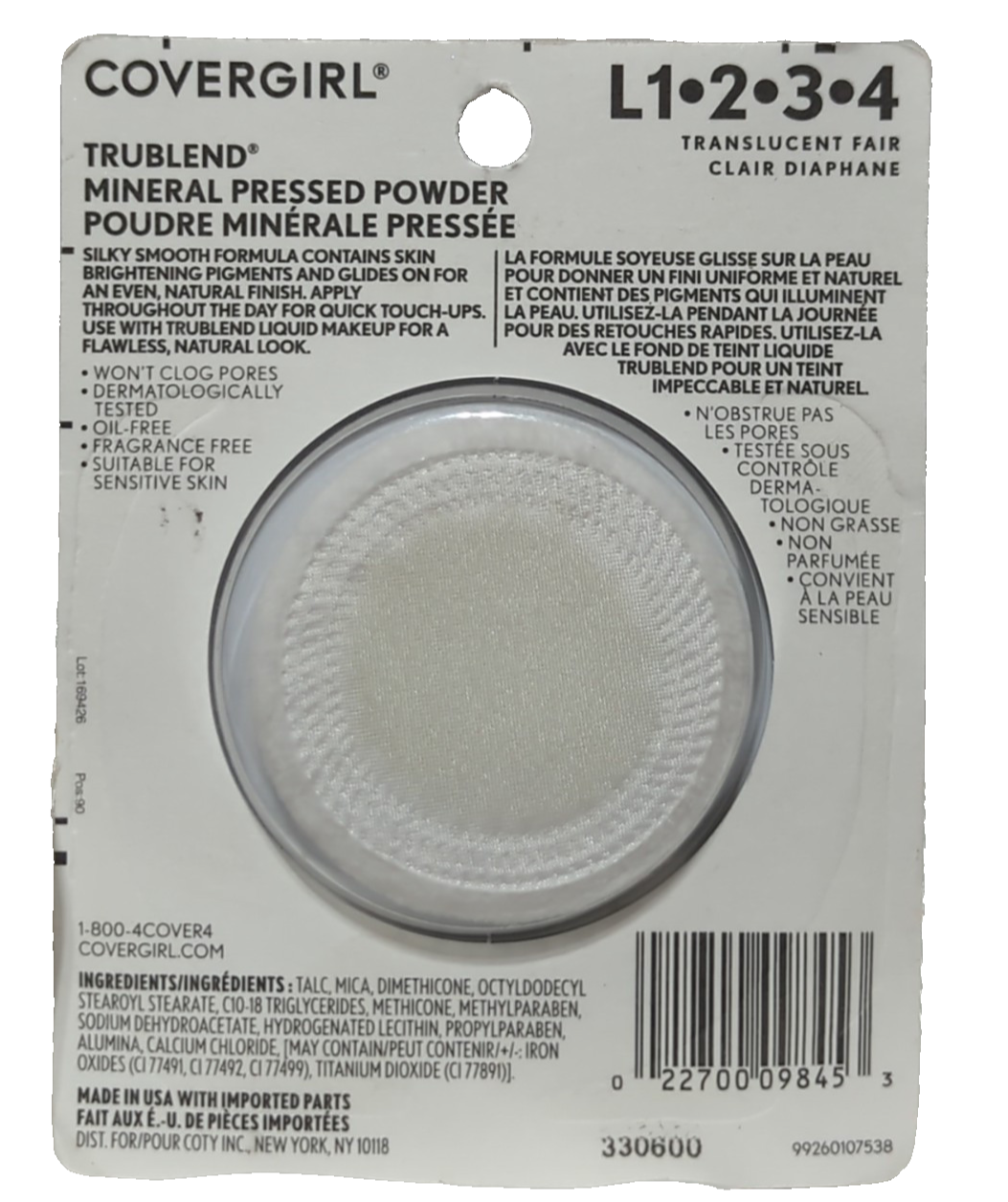 - Covergirl TruBlend Mineral Pressed Powder Translucent Fair L 1•2•3•4