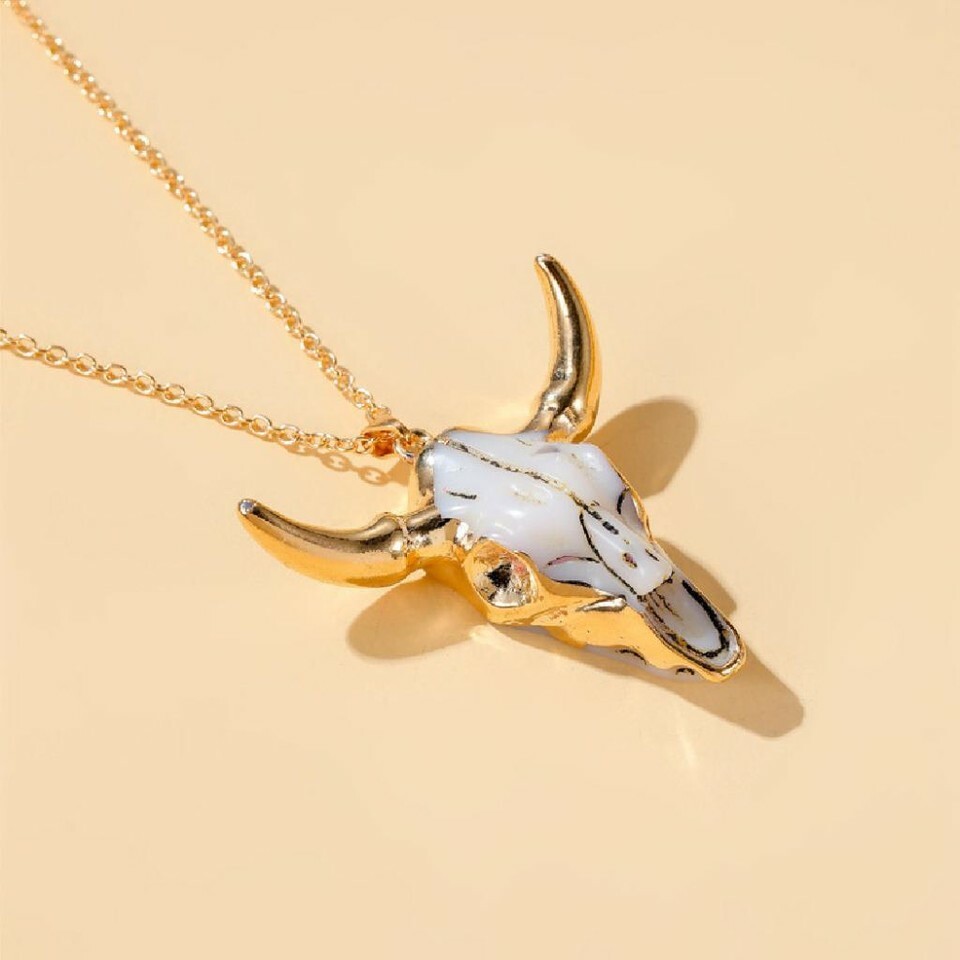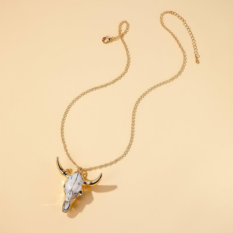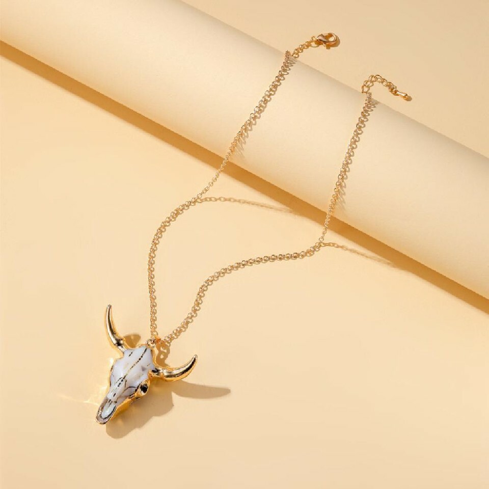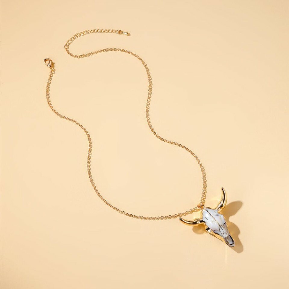 - COW SKULL NECKLACE 17" Chain Western Southwestern Cattle Steer Longhorn NEW