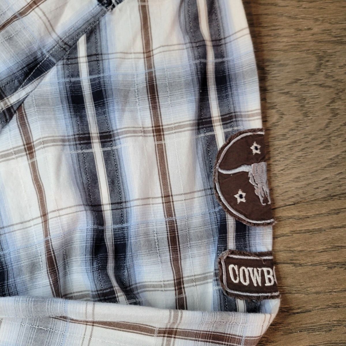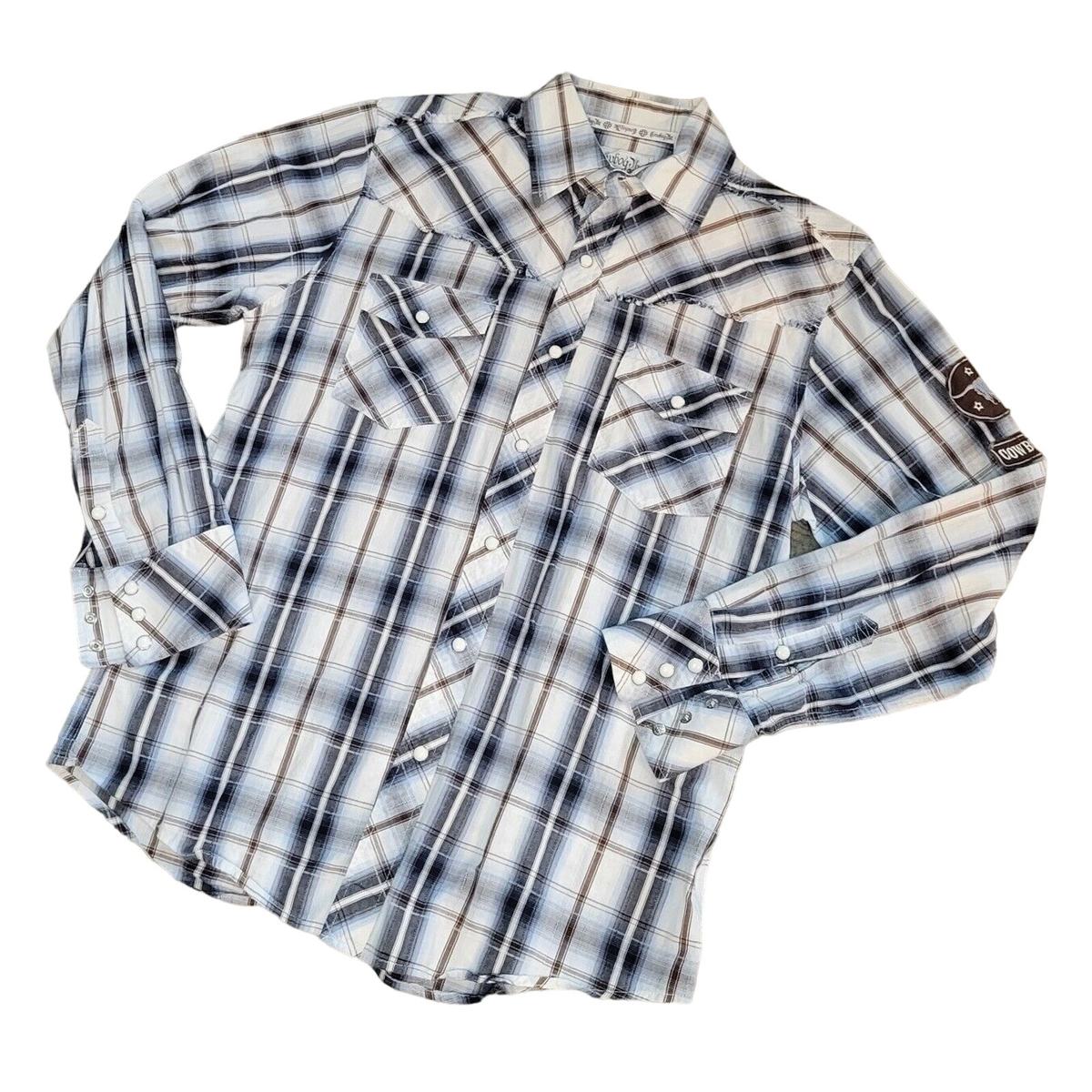 - Cowboy Up Brown White Snap Button Down Long Sleeve Size M