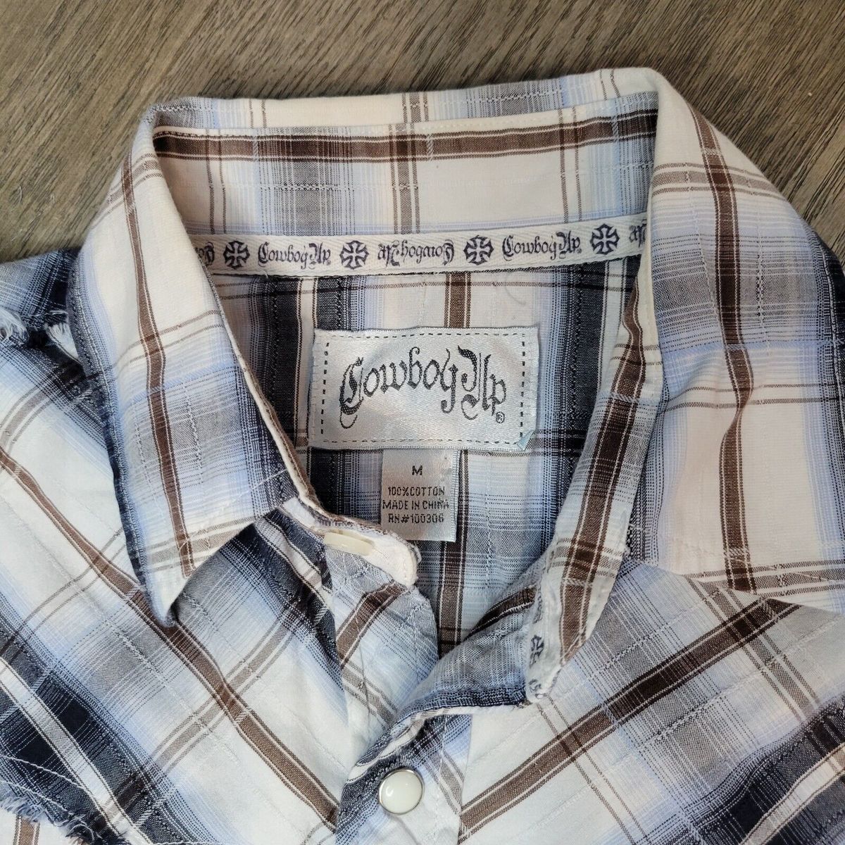 Cowboy Up Brown White Snap Button Down Long Sleeve Size M.