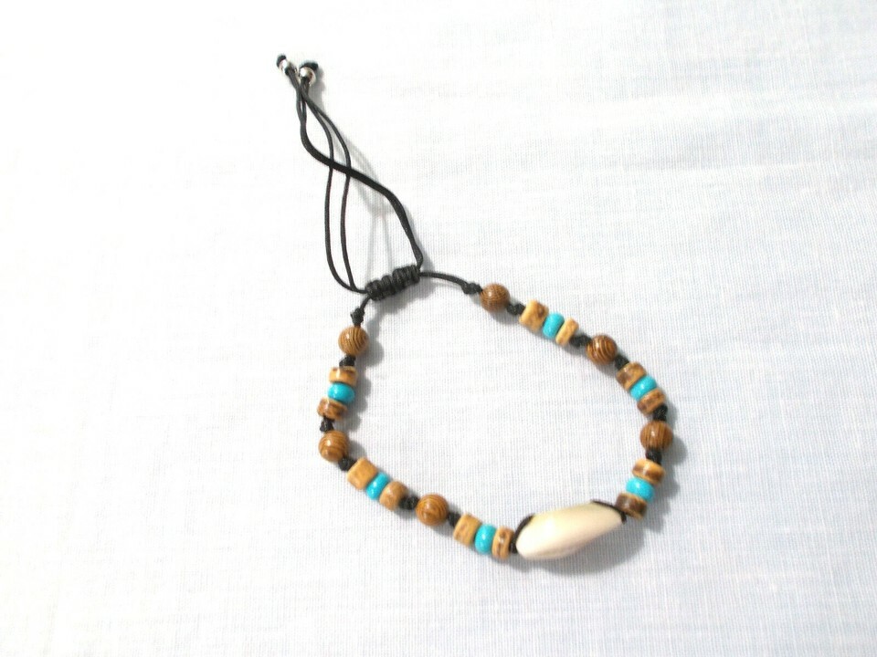 - COWRIE SHELL WOODEN BEADED ADJUSTABLE STRING CORD BRACELET ANKLET 6 - 10"
