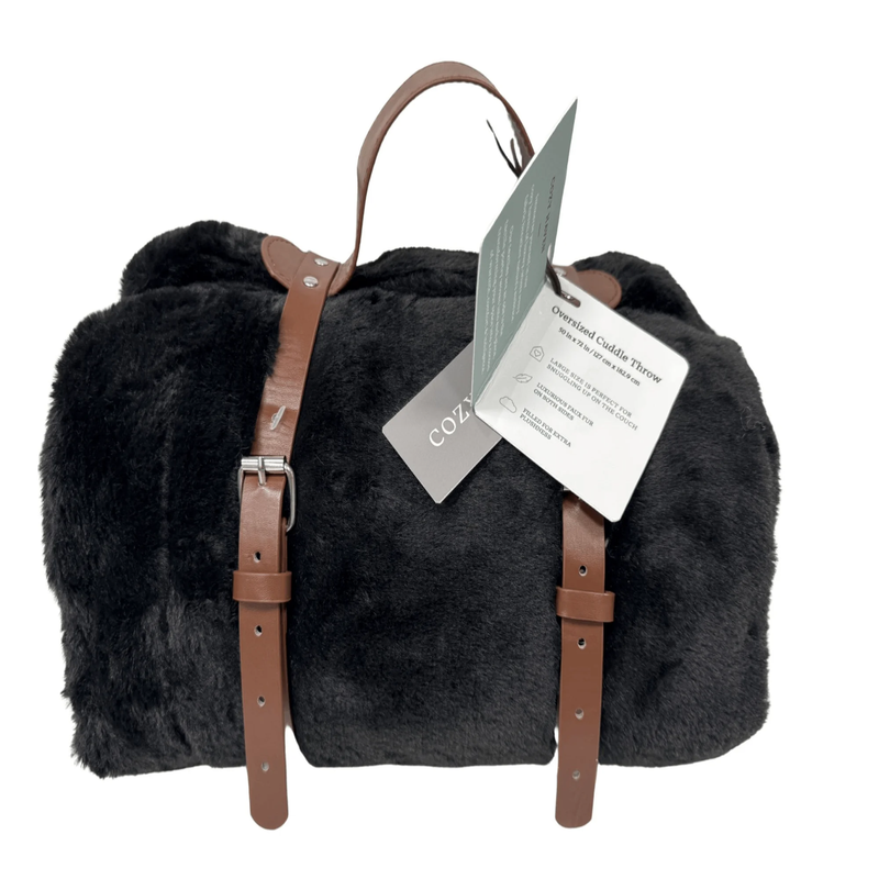 Oversized Comfort: Generously sized at 50" x 72" for full-body coverage?perfect for lounging on the couch or adding warmth to your bed. Reversible Design: Features ultra-soft faux fur on both sides for a luxurious, plush feel no matter which side you use. 100% Polyester Construction: Durable and cozy material provides lasting warmth and comfort. Includes Faux Leather Harness: Comes rolled with a stylish faux leather carrying harness for easy storage, transport, or gifting. Machine Washable: Easy care?just toss it in the washing machine for a quick refresh. Stylish Functional: Combines elegant design with everyday usability, adding a touch of luxury to any room. Available in Multiple Colors: Choose from a variety of colors to match your home decor.