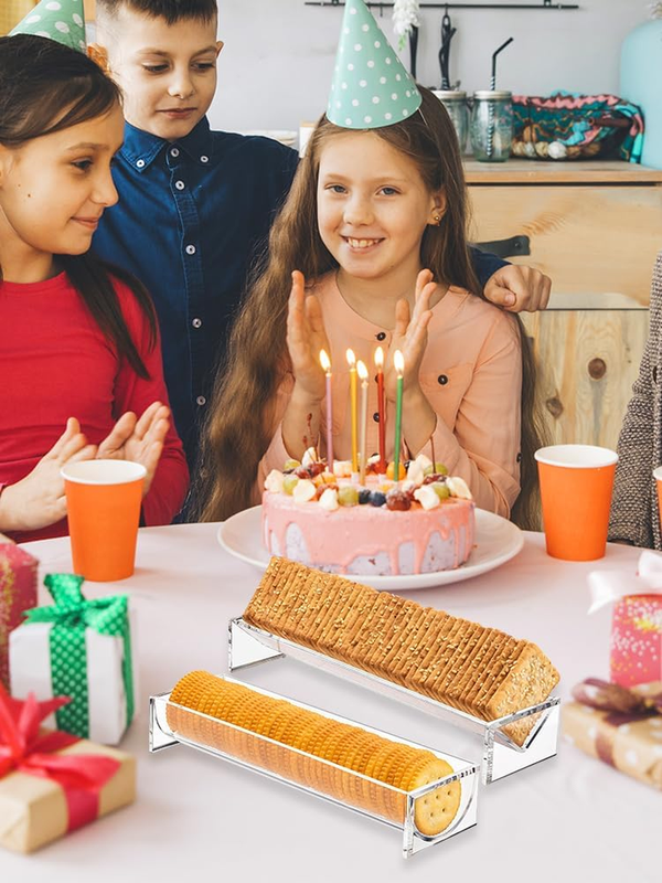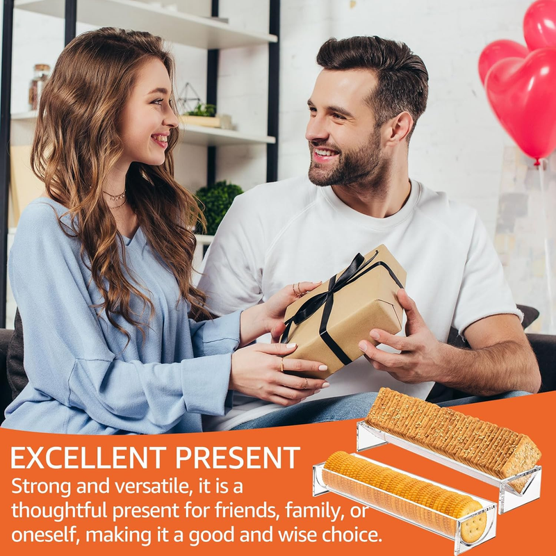 [Size Information] Our clear food tray is approximately 8.75 x 2.75 x 1.5 inches (L x W x H), which can hold the right amount of cookies or other snacks at the same time without taking up too much space.