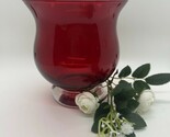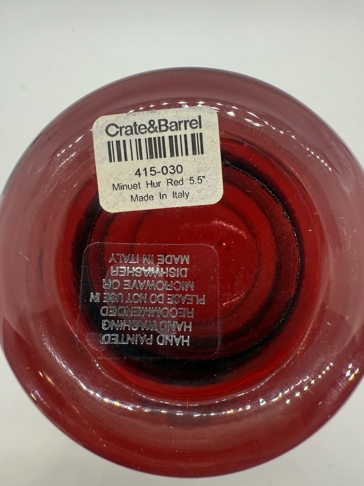 - Crate & Barrel Minuet Red Glass Hurricane Vase 5.5” Italy Candle Holder
