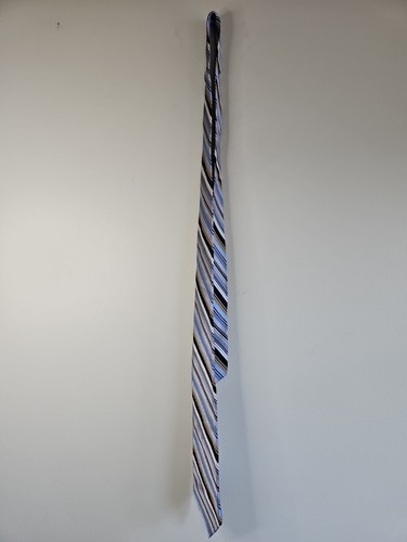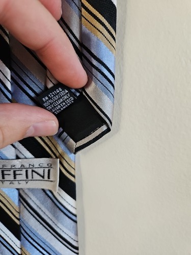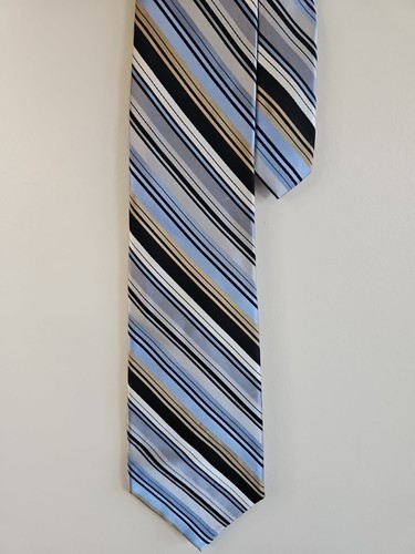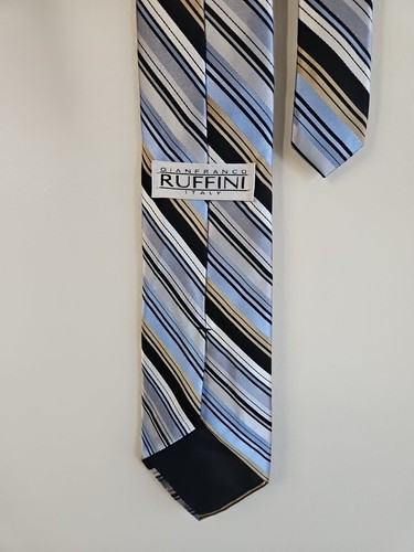 - Cravate Gianfranco Ruffini motif rayures bleu clair/or/gris, 100 % soie