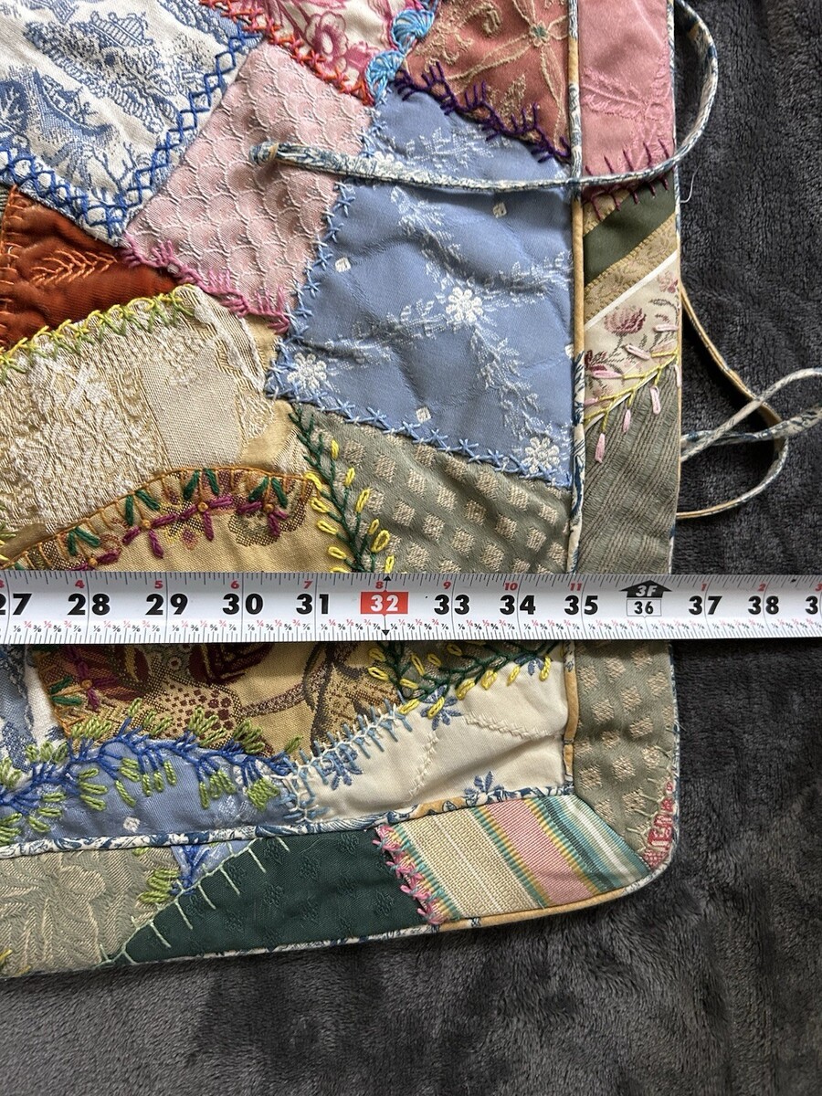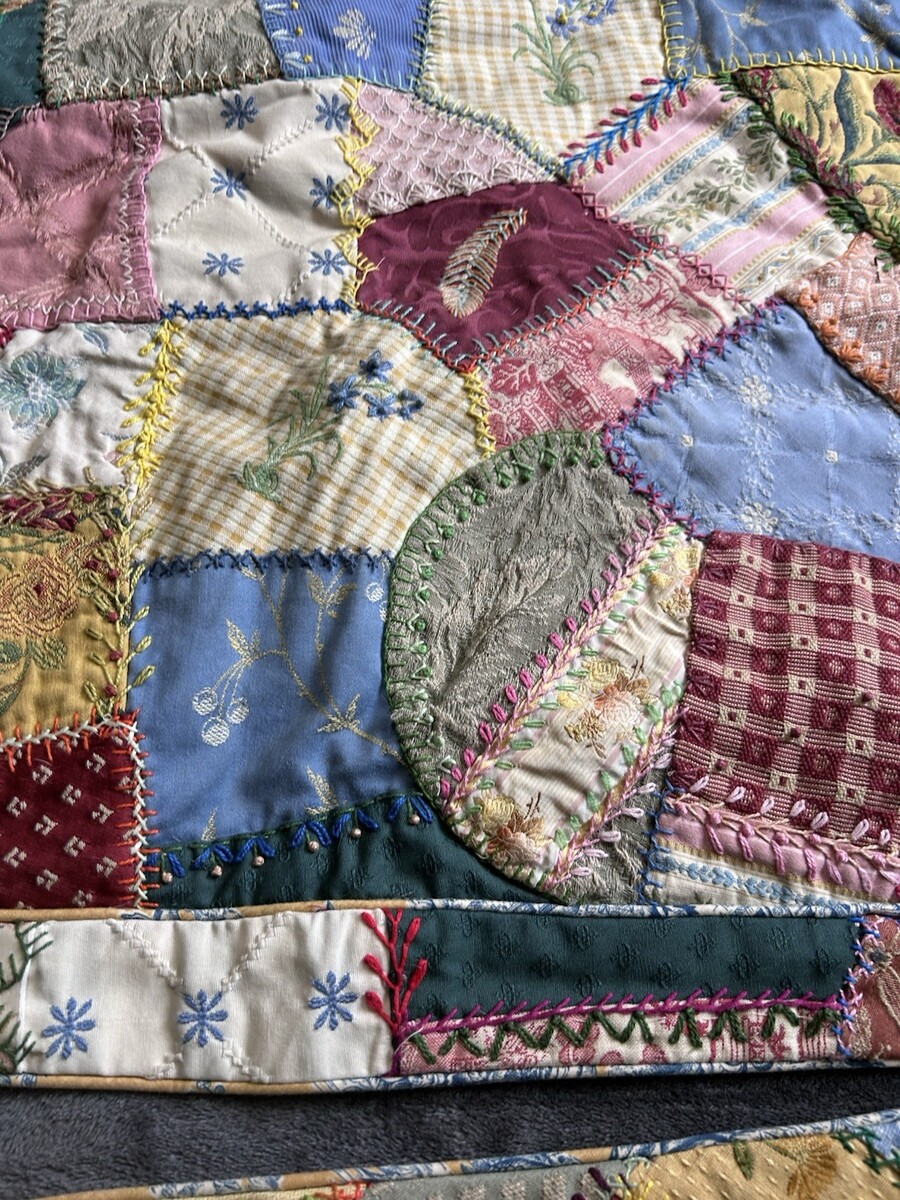 - Crazy Quilt patchwork king pillow cover sham set stunning hand stitch toile