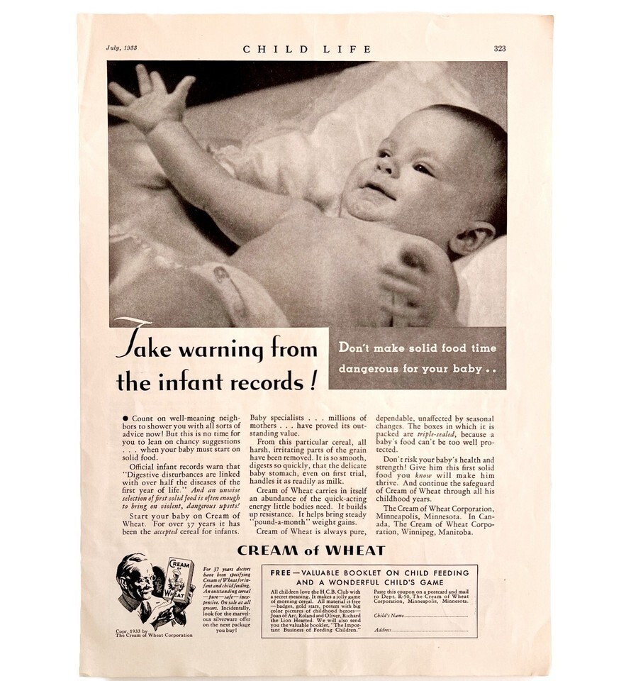 - Cream Of Wheat Infant Solid Foods 1933 Advertisement Hot Cereal Breakfast DWFF13