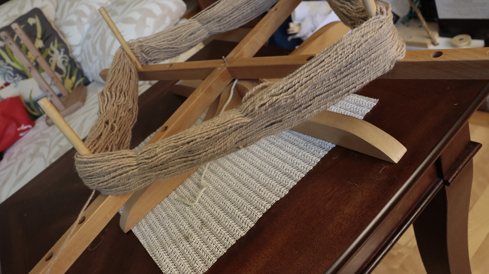 Once it?s plied, I transfer it into a skein, tie up that skein, and soak it in boiling water for ten minutes to set the twist in place. I then hang it somewhere with a weight at the bottom and let it dry. A few days later, I wind it into a ball, measure the yards, and consider it ready for sale or use.