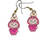 Trendy Creepy Cute FUFU ENERGY MONSTER BUNNY Kawaii Rabbit Fun Anime Animal Charm Colorful Enamel Metal Funky EARRINGS with Sharp Pointy Fangs Toothy Smile Novelty Jewelry