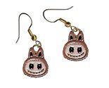 Trendy Weird Creepy Cute FUFU Energy MONSTER Smiling FACE Bunny Creature Toothy Smile with Sharp Pointy Fangs Smile Kawaii Rabbit Fun Anime Animal Charm DANGLE Funky EARRINGS Enamel Metal Novelty Jewelry - TAN BROWN