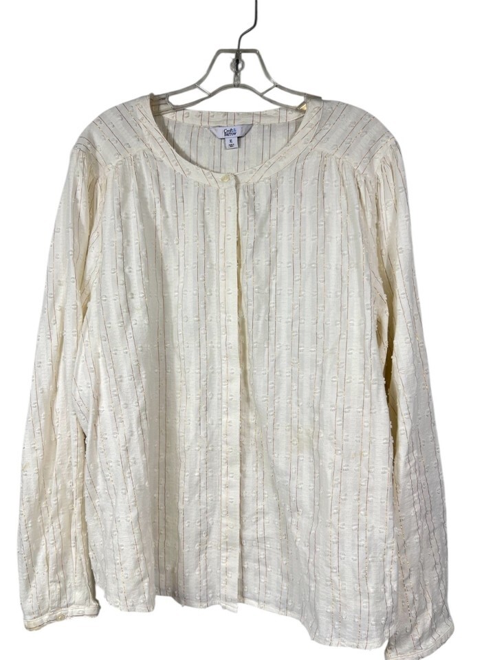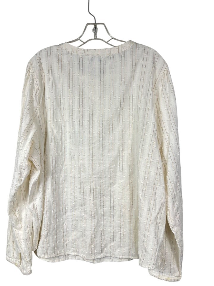 Croft & Barrow Womens XL White Gold Striped Textured Button-Front Blouse