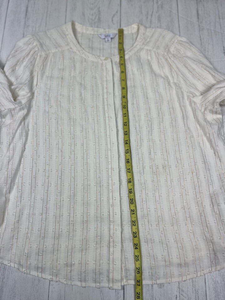 - Croft & Barrow Womens XL White Gold Striped Textured Button-Front Blouse