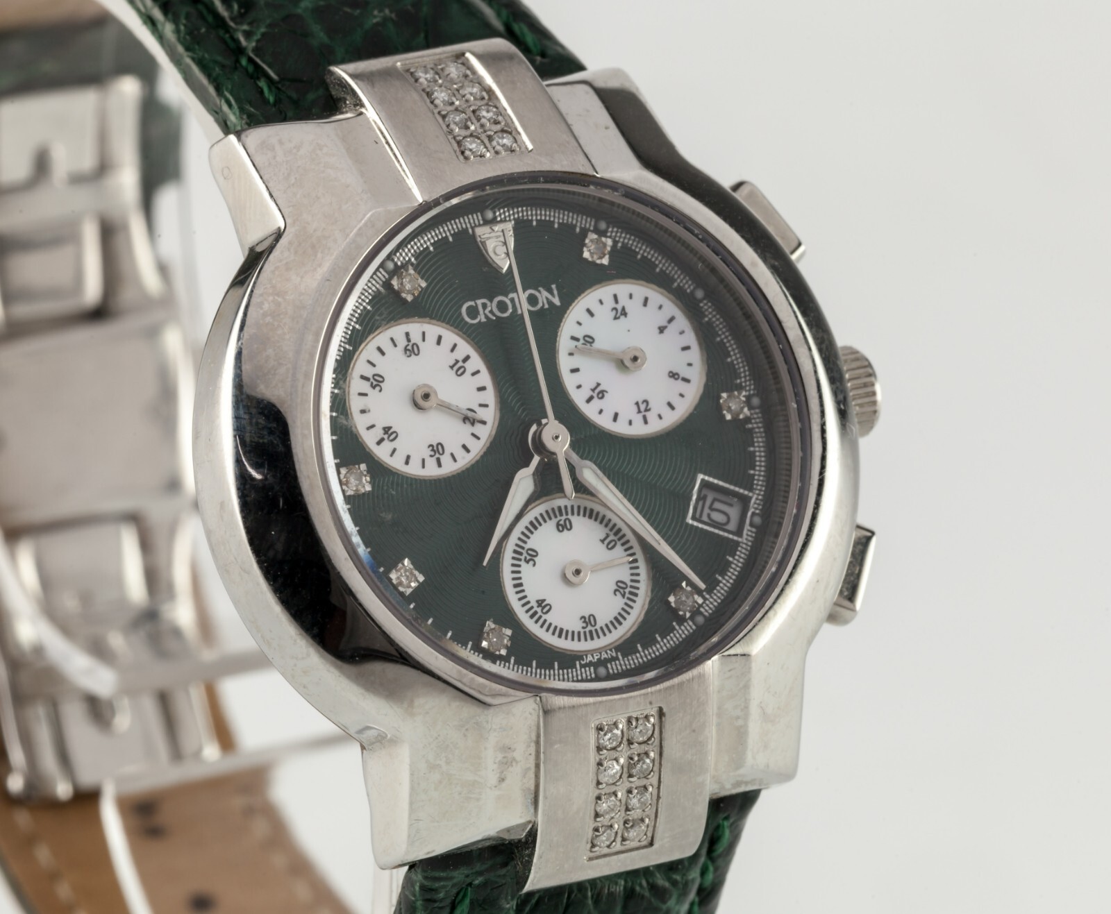 Original Croton Green Leather Band w/ Stainless Steel Butterfly Clasp