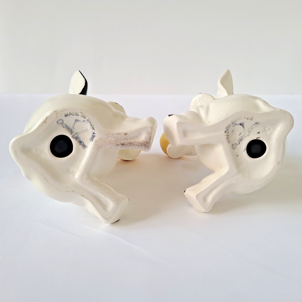 Two wonderful pieces of English Pottery brought to life by Crown Devon. Both pieces are signed "Made In England, Crown Devon" on the bottom and stamped with a signature royal crown. They were made some time in the 1920's or 1930's, certainly making them vintage and almost antique! After much research, I have found these figurines to be quite a rare find. It's undeniably special to find but one of these figurines, but to stumble upon a matching pair is quite extraordinary!